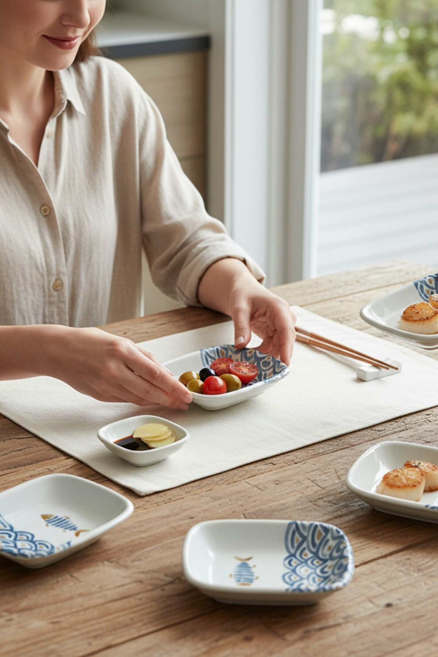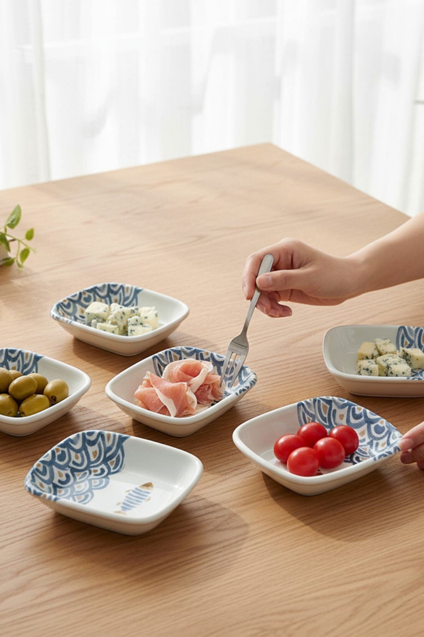 Keramika Balık Desenli Dikdörtgen Çerezlik Kayık 13 Cm 6 Adet-18192