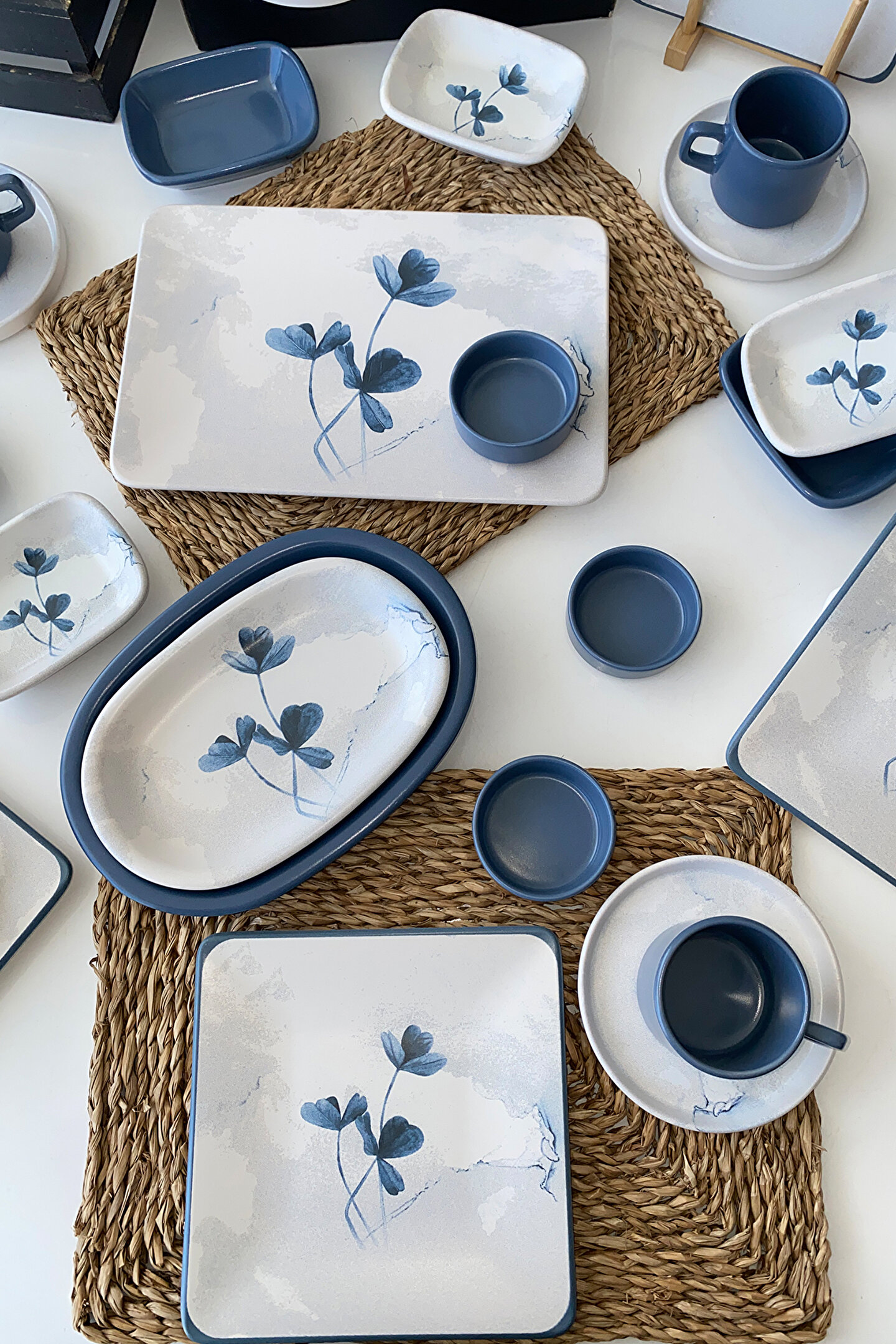 6 adet desenli 20 cm kahvaltı tabağı ; 6 adet mat mavi çay fincanı ; 6 adet desenli çay tabağı ; 3 adet mat mavi 8cm kase ; 3 adet desenli 13cm dikdörtgen ; 3 adet mat mavi 13cm dikdörtgen ; 1 adet mat mavi 25cm kayık ; 1 adet desenli 22cm kayık ; 1 adet desenli 31*21cm kayık; Ürün kullanımı: Renkleri ve baskısı solmaz. Kolay temizlenir, mikrop barındırmaz. ; Bulaşık makinesi normal ayarında yıkanabilir. ; Tamamen sağlıklı ve ekolojik malzeme yapısına sahiptir. ; Türkiye’de üretilmiştir. ; Almış olduğunuz bu üründe kırık ürün değişim garantisi bulunmaktadır. Koli içerisinde bilgilendirme broşürü yer almaktadır. ; Taşıma esnasında kırılma riskine karşı güvenli paketleme yapılarak gönderimi sağlanmaktadır. ;