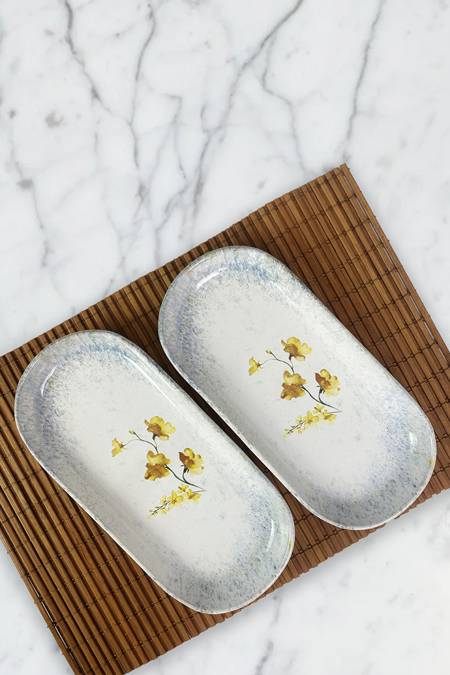 Mikrodalgada güvenle kullanılabilen yapısı sayesinde, sıcak yemeklerinizi pratik bir şekilde ısıtabilirsiniz; Dikdörtgen tasarımı ile modern ve şık bir görünüm sunar, sofralarınıza estetik bir dokunuş katar; Çiçekli deseniyle göz alıcı bir stil sergileyen bu tabaklar, sofralarınıza baharın tazeliğini getirir; Stoneware materyali sayesinde dayanıklılık ve uzun ömürlü kullanım vaat eder; Kayık tabak formu ile hem göze hitap eder hem de servis sırasında kolaylık sağlar;