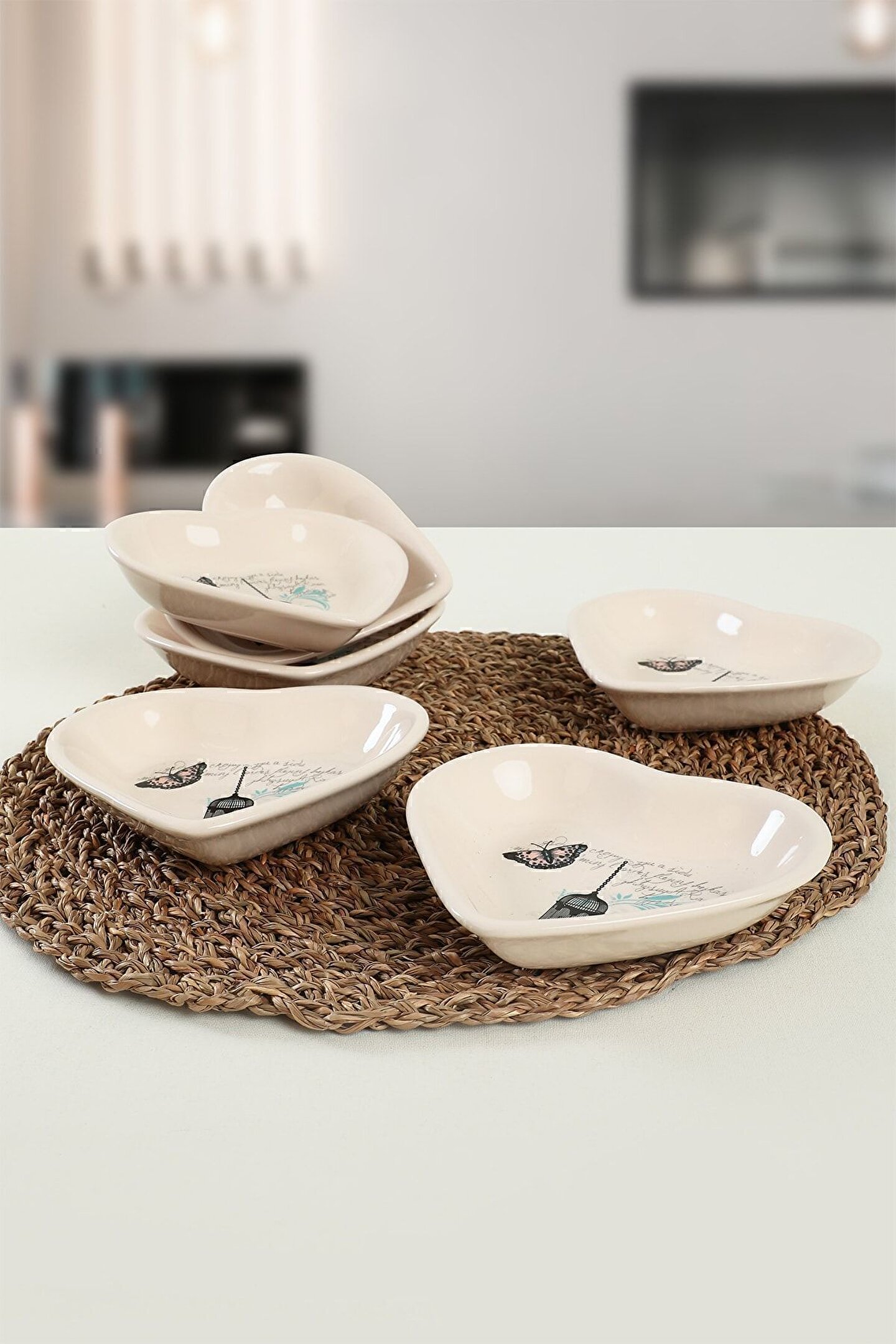 Keramika Retro Kalp Çerezlik 14 Cm 6 Adet