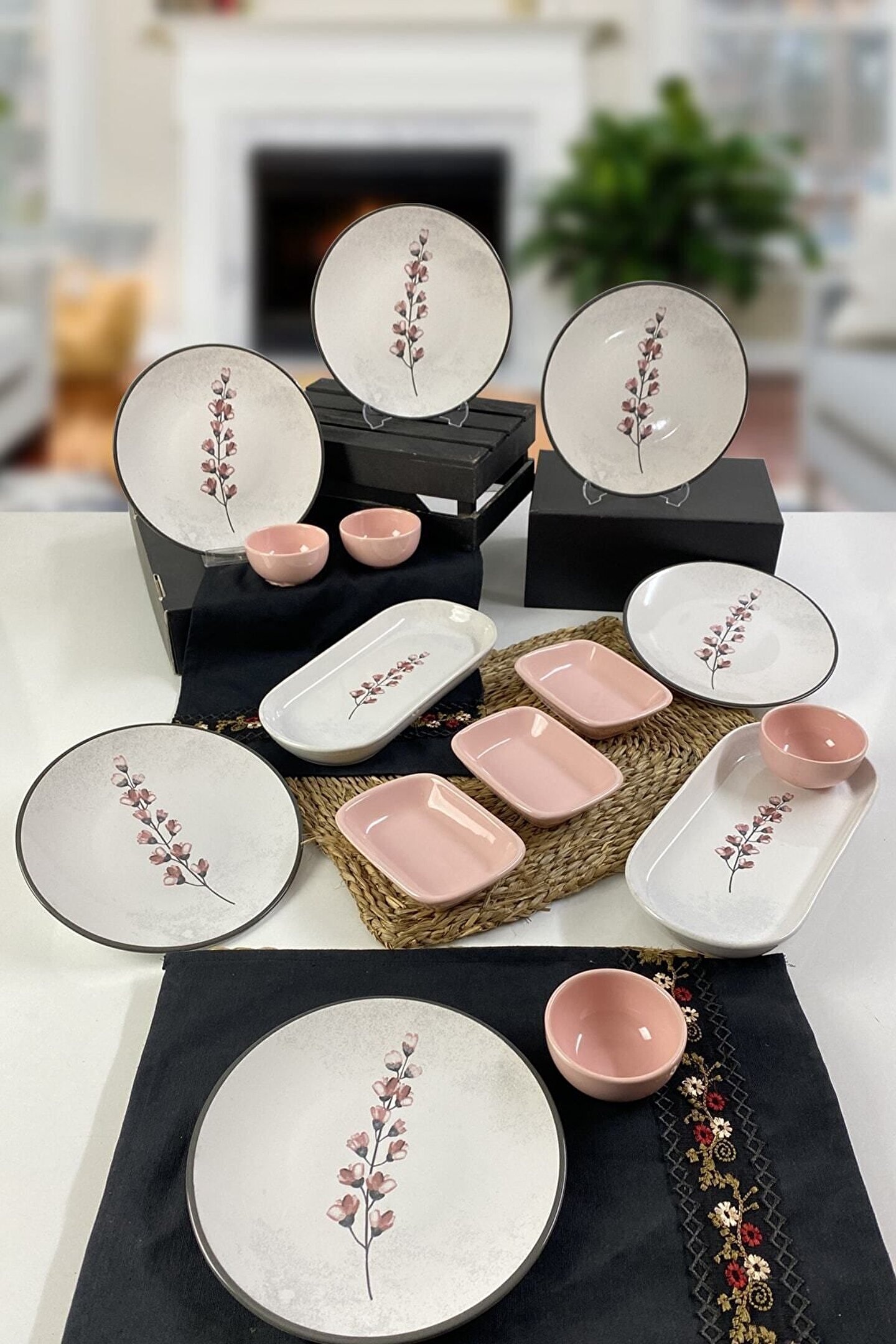 6 adet 20cm desenli kahvaltı tabağı ; 4 adet 8cm açık pembe yuvarlak kahvaltılık ; 2 adet 26cm desenli kayık tabak ; 3 adet 13cm açık pembe dikdörtgen kahvaltılık ; Ürün kullanımı: Renkleri ve baskısı solmaz. Kolay temizlenir, mikrop barındırmaz. ; Bulaşık makinesi normal ayarında yıkanabilir. ; Tamamen sağlıklı ve ekolojik malzeme yapısına sahiptir. ; Türkiye’de üretilmiştir. ; Almış olduğunuz bu üründe kırık ürün değişim garantisi bulunmaktadır. Koli içerisinde bilgilendirme broşürü yer almaktadır. ; Taşıma esnasında kırılma riskine karşı güvenli paketleme yapılarak gönderimi sağlanmaktadır. ;