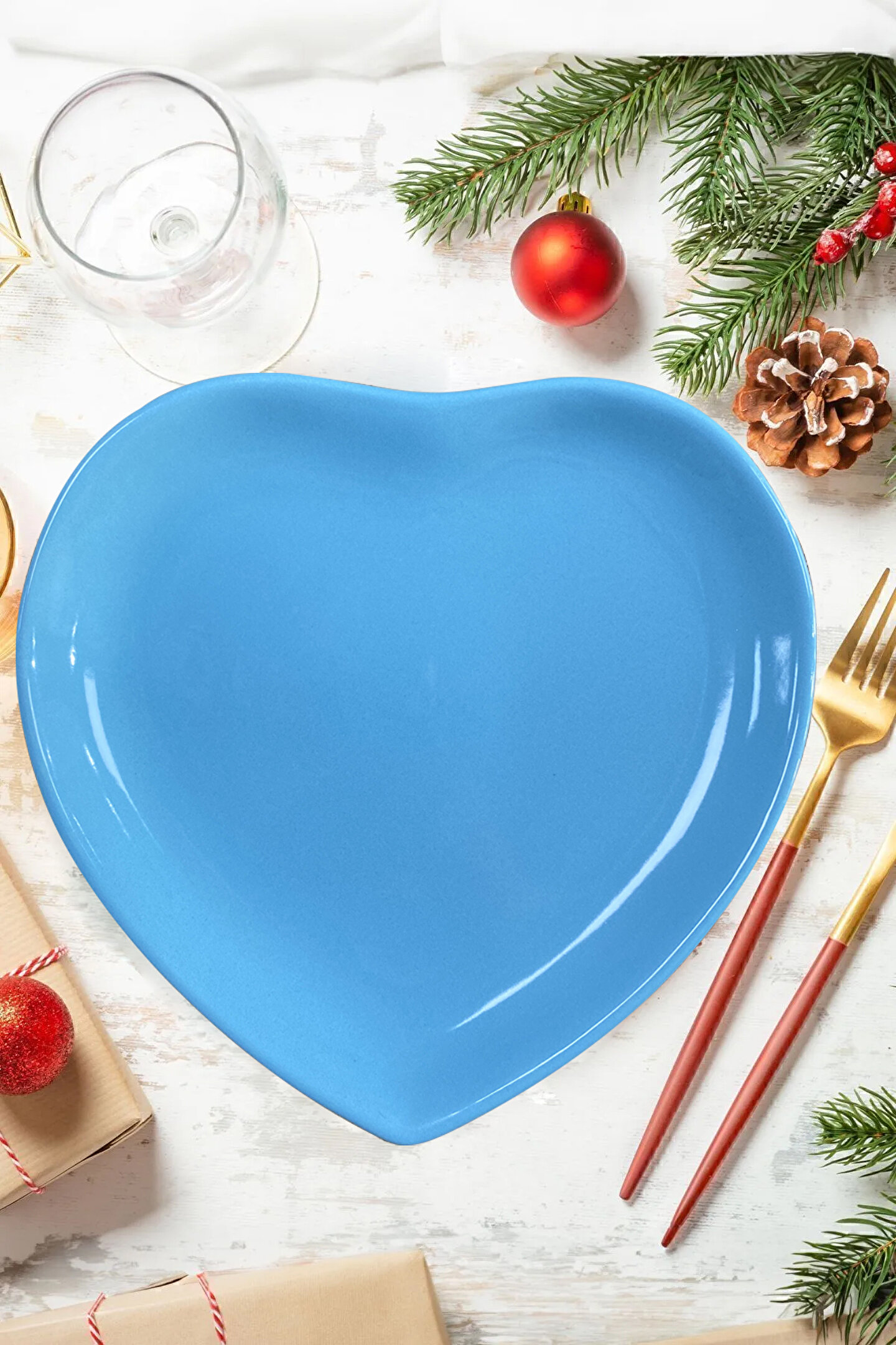 • 1 Adet 25 cm Kalp Servis Tabağı Turkuaz