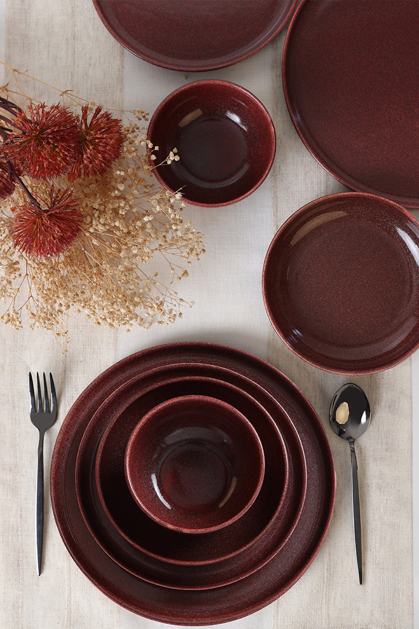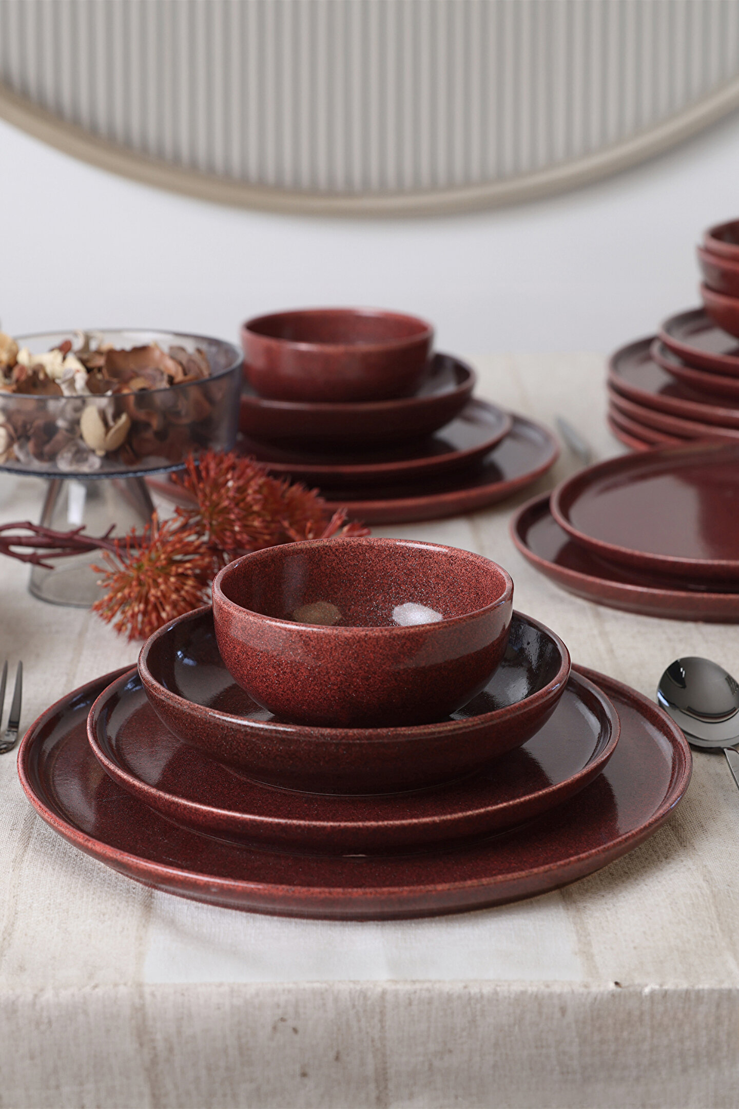 6 adet 28 cm simli kırmızı servis tabağı.; ; 6 adet 22cm simli kırmızı pasta tabağı.; 6 adet 18cm simli kırmızı yemek tabağı.; 6 adet 12cm simli kırmızı çorba kasesi.; Tüm ürünler keramika markalıdır.; ; Ürün kullanımı: Renkleri ve baskısı solmaz.; ; Kolay temizlenir, mikrop barındırmaz.; ; Bulaşık makinesi normal ayarında yıkanabilir.; ; Tamamen sağlıklı ve ekolojik malzeme yapısına sahiptir.; ; Türkiye’de üretilmiştir.; ; Almış olduğunuz bu üründe kırık ürün değişim garantisi bulunmaktadır.; Koli içerisinde bilgilendirme broşürü yer almaktadır.; ; Taşıma esnasında kırılma riskine karşı güvenli paketleme yapılarak gönderimi sağlanmaktadır.; ;