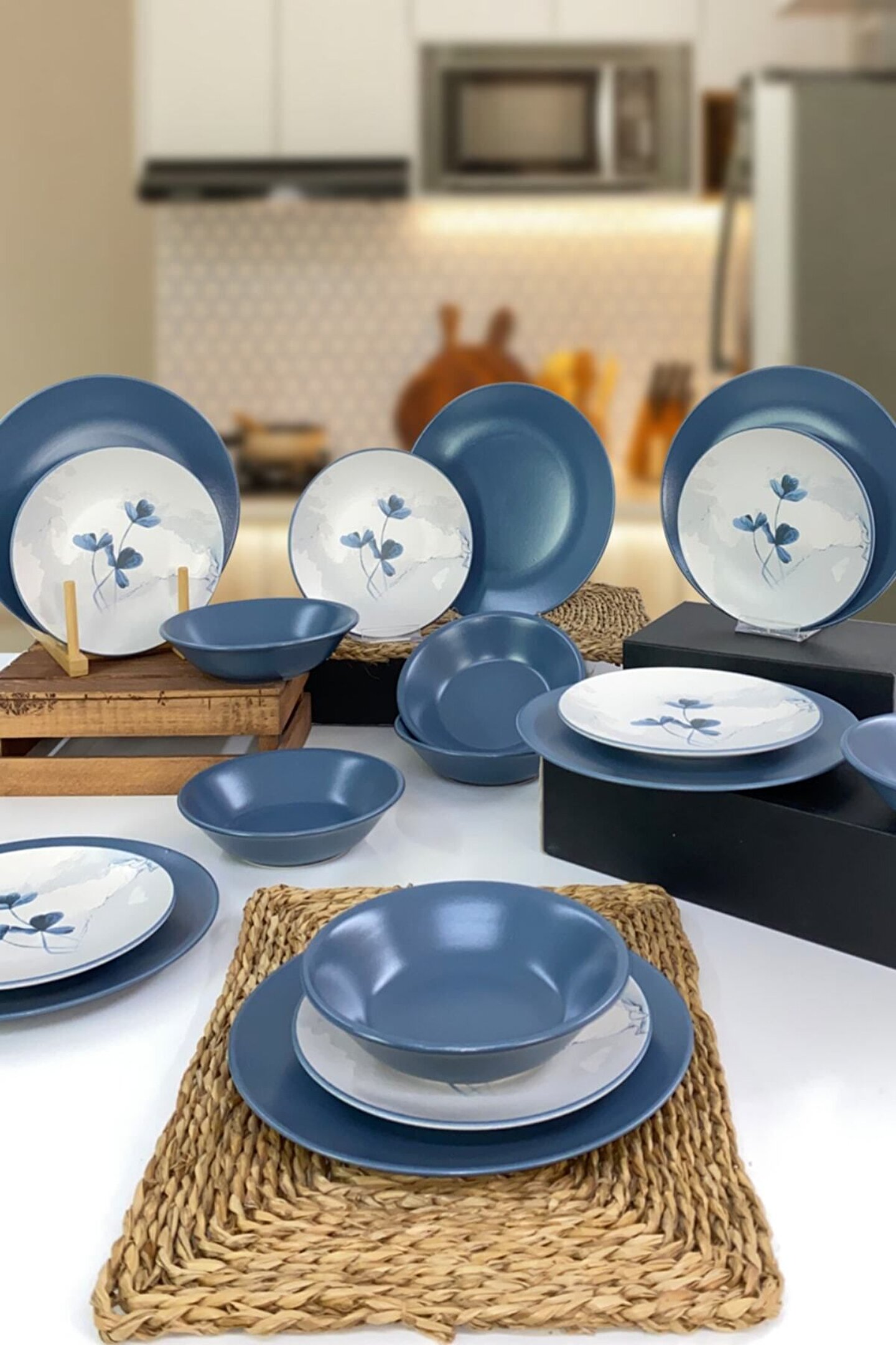 Stoneware malzemesi sayesinde uzun ömürlü ve dayanıklı kullanım sunar; Bulaşık makinesinde kolayca yıkanabilir olması, temizliği pratik ve zahmetsiz hale getirir; Yuvarlak tasarımı ile klasik ve şık bir görünüm sağlar, sofralarınıza zarif bir dokunuş katar; 6 kişilik geniş kapasitesi, aile yemeklerinden özel davetlere kadar her türlü toplantıya uyum sağlar; Çiçekli tema ve stil detayları ile sofralarınıza estetik bir hava katarken, mavi renk tonuyla modern bir atmosfer yaratır;