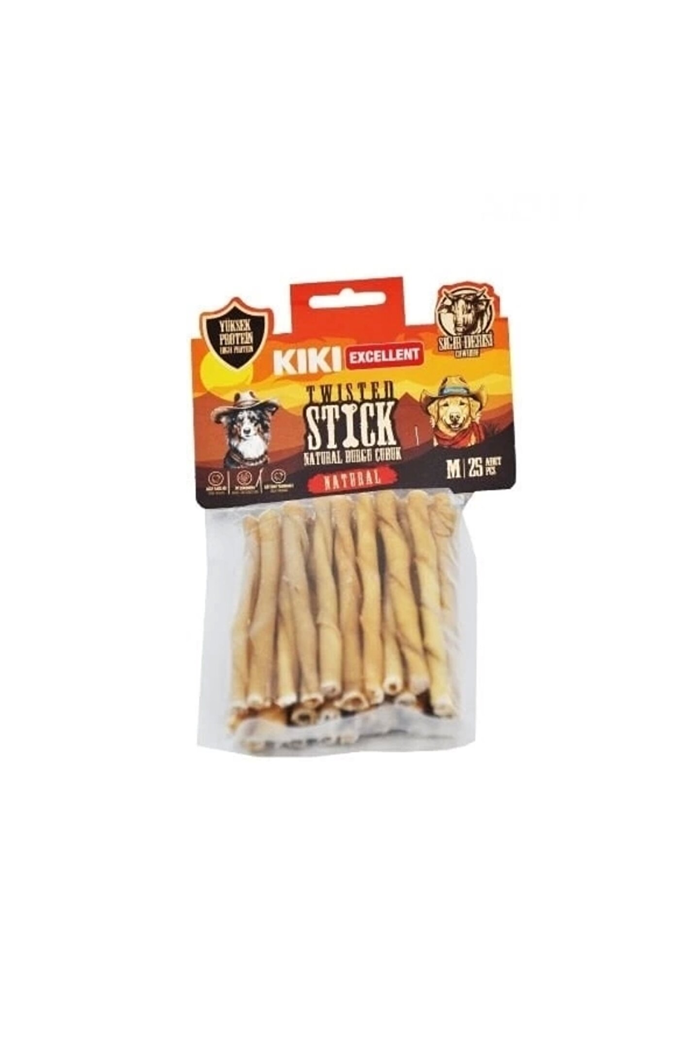 Kiki Excellent Sığır Derisinden Naturel Burgu Çubuk Kemik Köpek Ödülü 25 Adet
