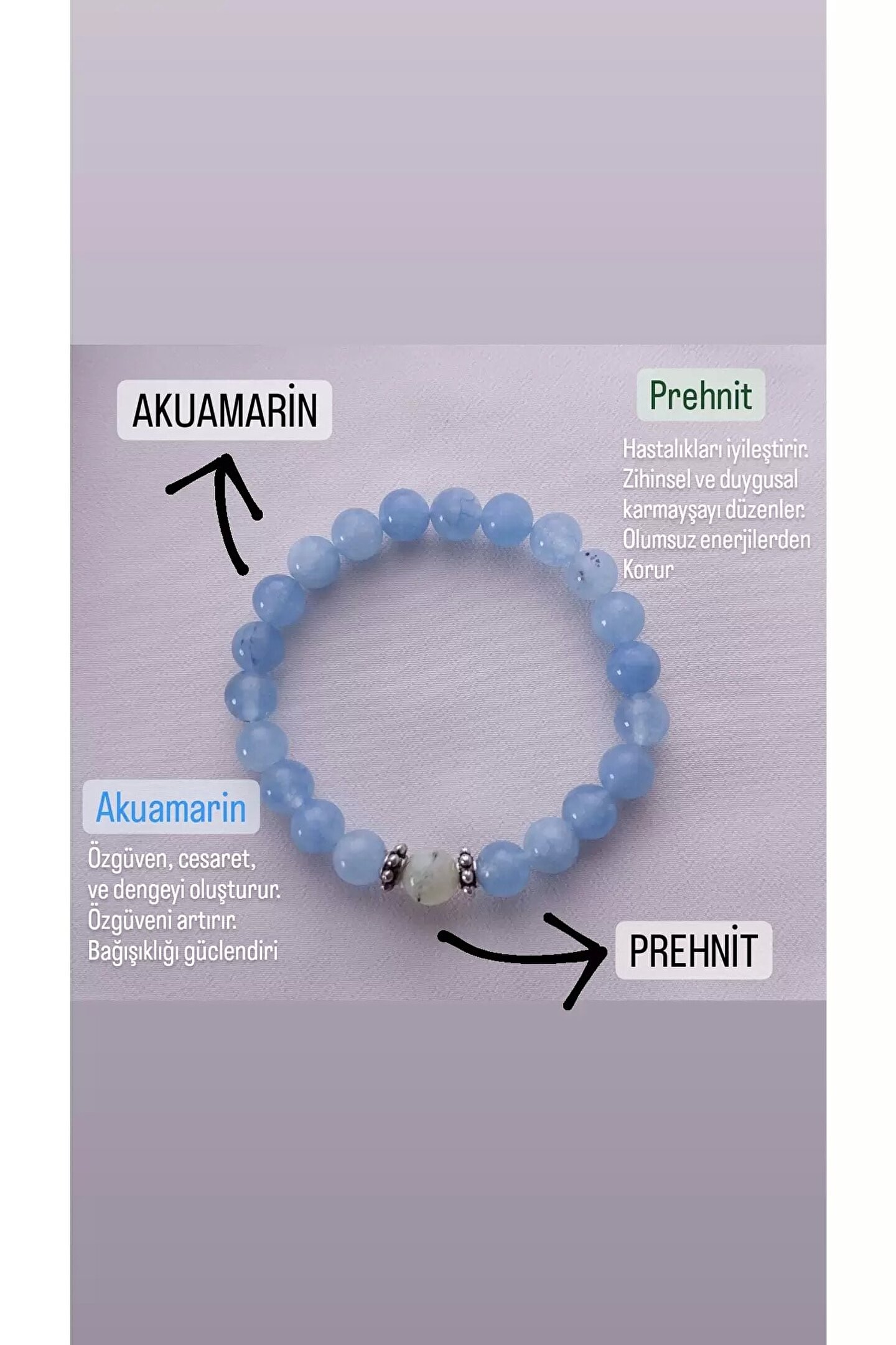- Doğal taş bileklik, şıklığınızı tamamlayacak zarif bir aksesuardır; - Akuamarin prehnit taşı, benzersiz renk tonları ve desenleriyle göz alıcı bir görünüm sunar; - 1. kalite malzemeden üretilmiş olup, uzun süreli kullanım için idealdir; - Doğal taş kullanımı sayesinde her bileklik benzersiz ve özgün bir parça haline gelir;