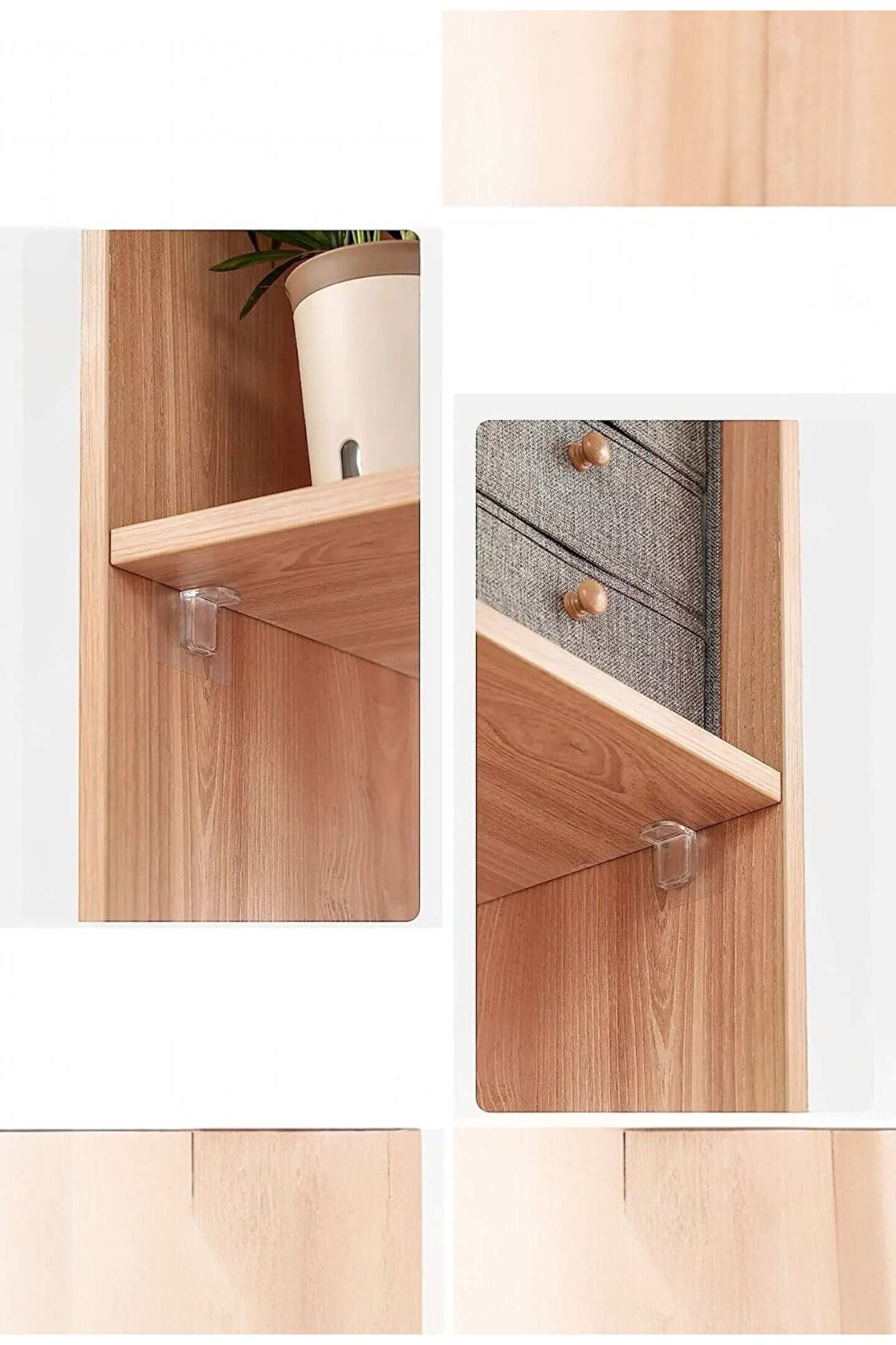 Raf tutucu klipsleri, rafınızı sabitlemek için tasarlanmış olup, rafın bölümlerini sabit bir şekilde destekleyebilir. Kendinden yapışkanlı raf klipsi, uzun ömürlü ve dayanıklı kullanım için yüksek kaliteli malzemeden üretilmiştir.