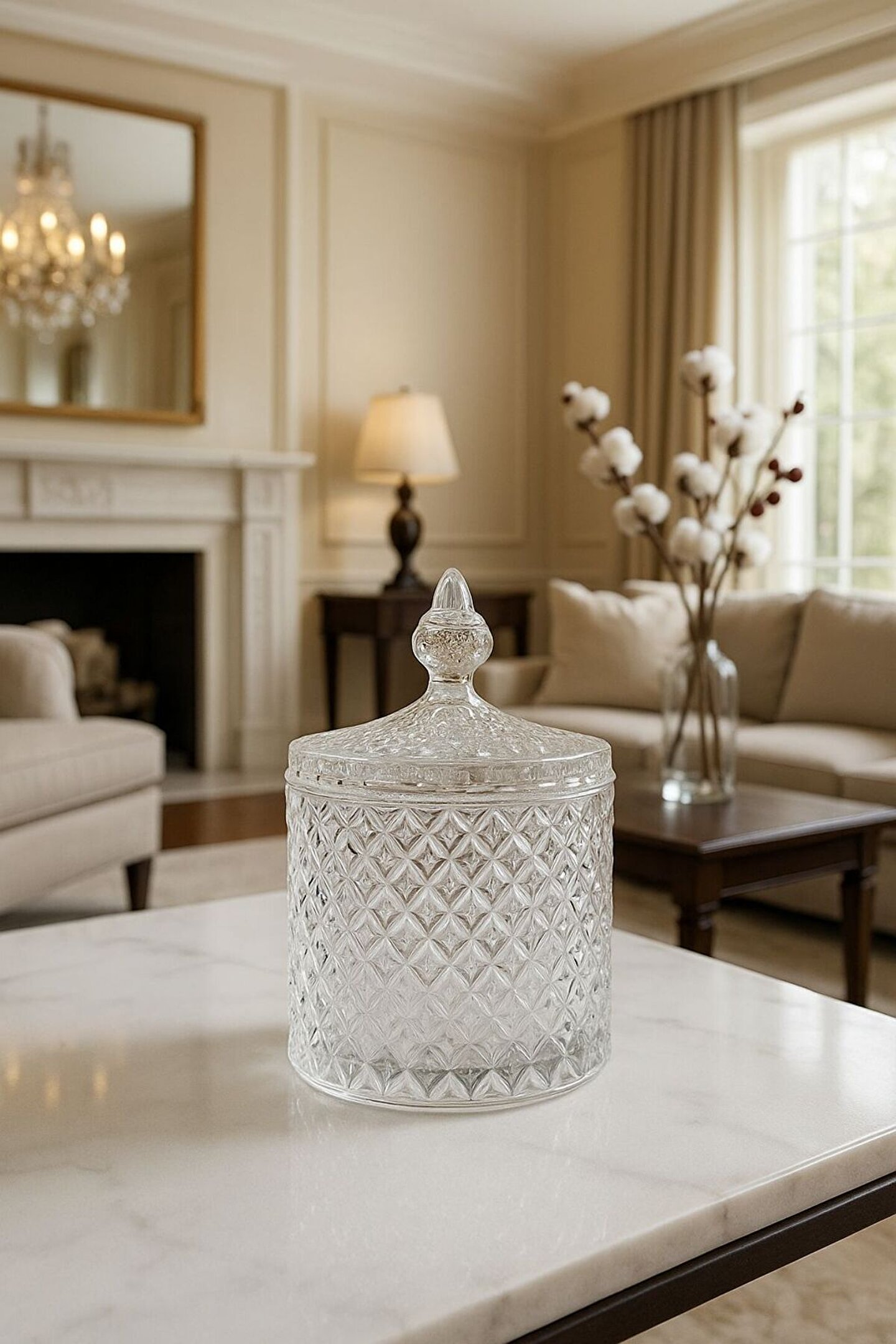 Cam kapaklı kristal desenli şekerlik, zarif tasarımıyla sofralarınıza ve misafir ikramlarınıza şıklık katar.; Lokum, şeker, çikolata, kahve ve kuruyemiş sunumları için idealdir.; Yüksek kaliteli cam malzemesiyle hem dayanıklı hem de dekoratif bir kullanım sunar.; Kapaklı yapısı sayesinde ikramlıklarınızı hijyenik bir şekilde muhafaza eder.; Modern ve klasik dekorasyonlara uyum sağlayan şık tasarımıyla evinizin her köşesinde kullanabilirsiniz.; Ölçüler: • Yükseklik (kapaksız): 10 cm • Yükseklik (kapaklı): 17 cm • Genişlik: 10 cm Özellikler: • Kristal desenli cam tasarım • Kapaklı ve hijyenik kullanım • Lokumluk, şekerlik, çikolatalık olarak kullanılabilir • Şık sunum ve dekoratif görünüm • Dayanıklı ve uzun ömürlü cam malzeme