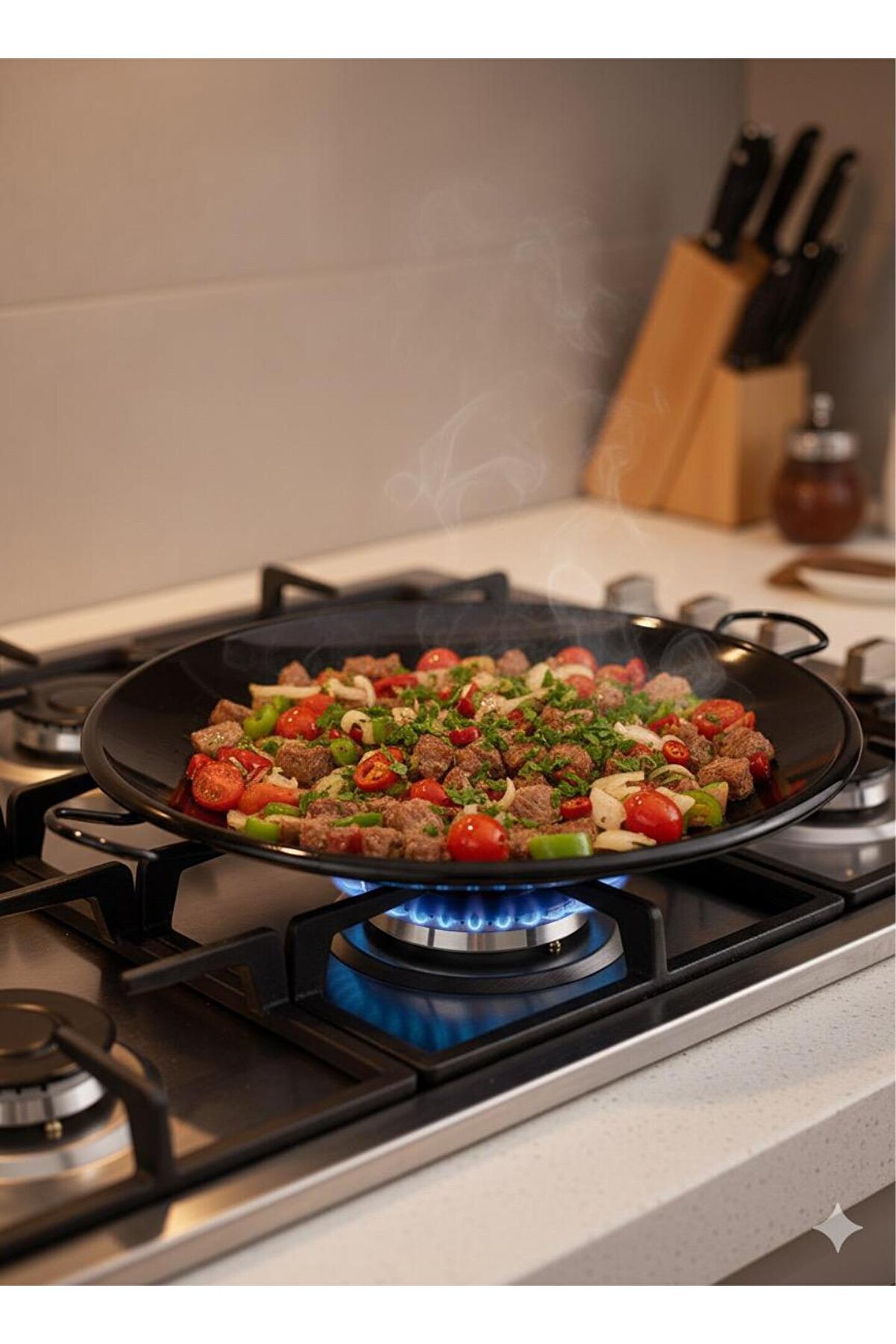 - Gıda ile temas güvenliği sağlayan emaye kaplama sayesinde, yiyecekleriniz tavada pişerken zararlı maddelerle temas etmez.; - 30 cm çapındaki geniş yüzeyi ile büyük porsiyonlar için idealdir; aile yemekleri ve misafir ağırlamalarınızda rahatlıkla kullanabilirsiniz.; - Emaye materyali, dayanıklılığı ve uzun ömürlü kullanımı ile öne çıkar; yıllarca güvenle tercih edebilirsiniz.; - Tek parça halinde gelen bu sac tava, mutfakta kolayca yer bulur ve ekstra aksesuarlara ihtiyaç duymazsınız.; - Türkiye'de üretilmiş olmasıyla yerel sanayi desteği sağlar ve kaliteli işçilikten emin olabilirsiniz.; - Yapışmaz tabanı sayesinde yemeklerinizin tava yüzeyine yapışmadan kolayca pişmesini sağlar ve temizliği pratik hale getirir.;
