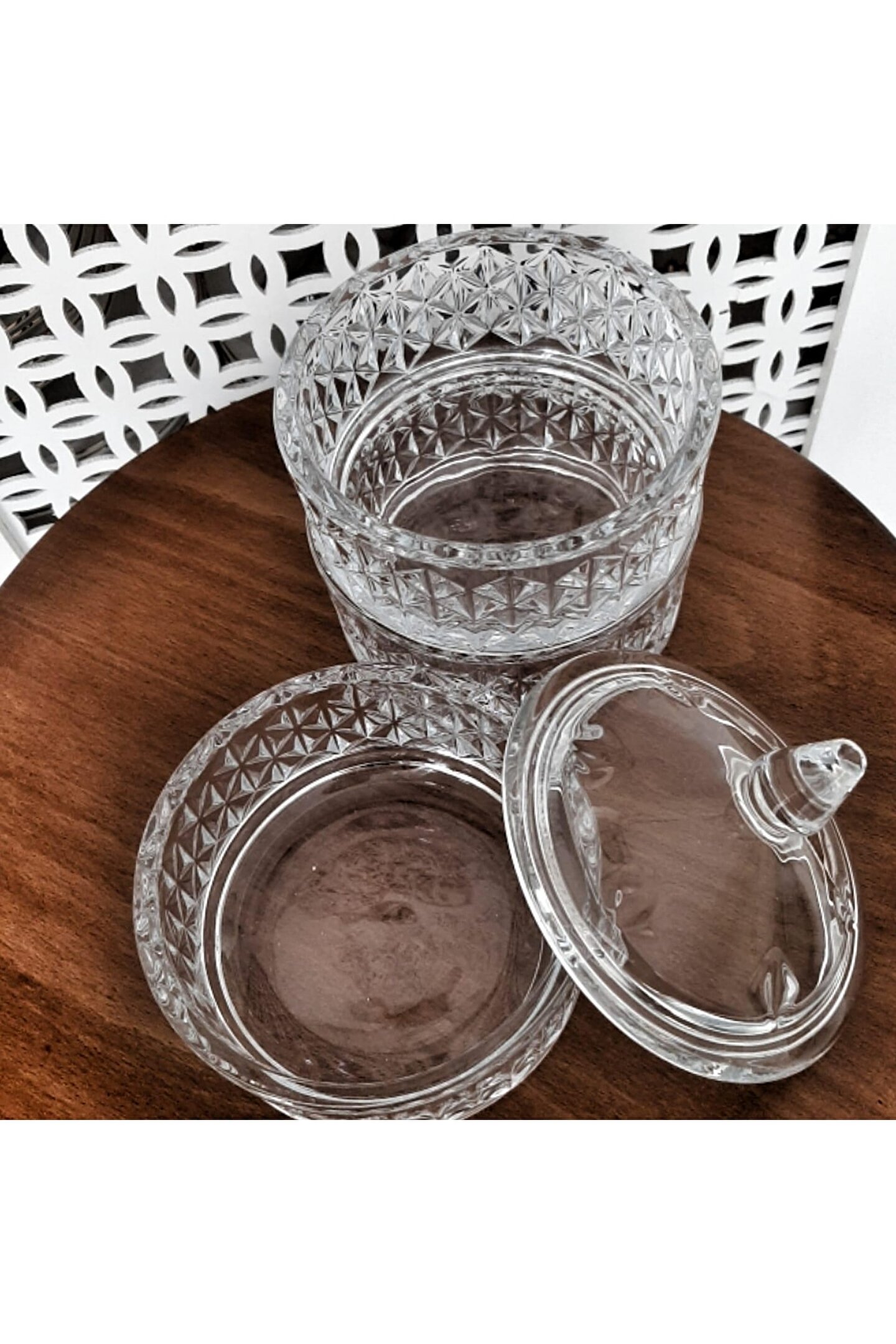 Şık ve modern tasarımıyla mutfaklarınıza estetik bir dokunuş katan kristal görünümlü cam kurabiyelik; 12,5 cm boyutlarındaki bu baharatlık, mutfak tezgahınızda yerden tasarruf etmenizi sağlar; Üç katlı yapısı sayesinde baharatlarınızı düzenli ve kolayca erişilebilir bir şekilde saklamanızı sağlar; Yüksek kaliteli cam malzemesi ile dayanıklılık ve uzun ömürlü kullanım sunar;