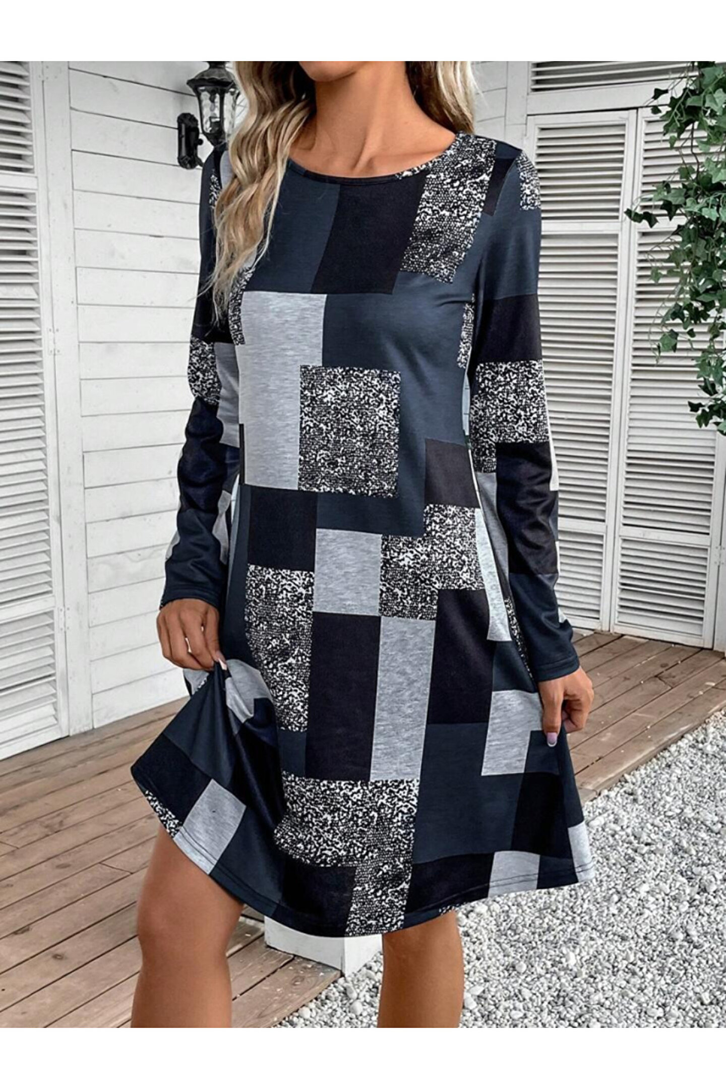 Kadın Uzun Kollu Yuvarlak Yaka Geometrik Süprem Elbise