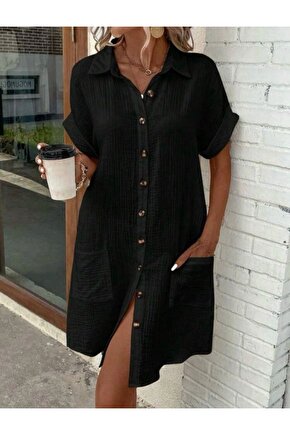 Kadın Kısa Kollu Bisiklet Yaka Yandan Yırtmaçlı Viskon Midi Elbise
