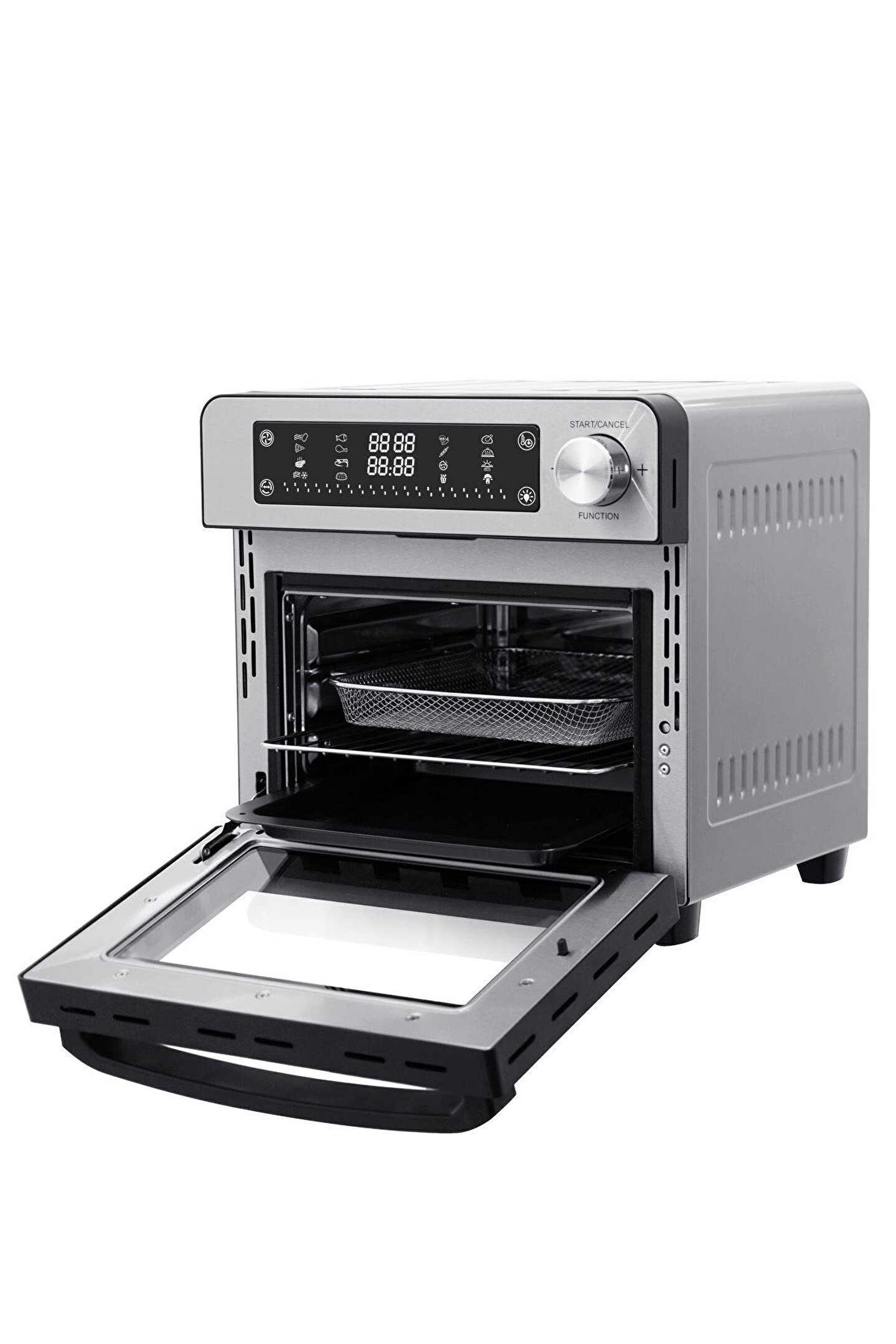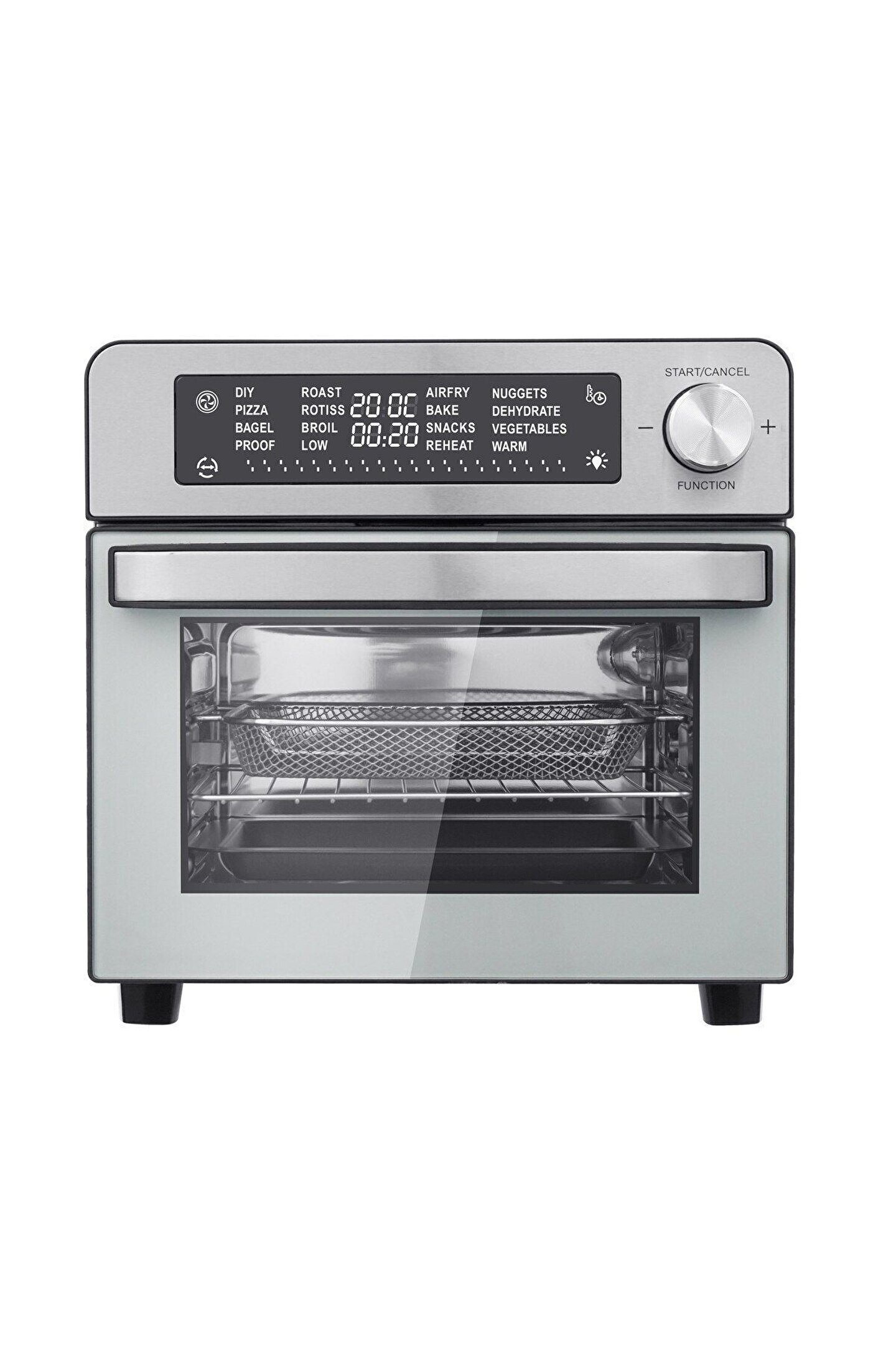 Çok Fonksiyonlu Yağsız Fritöz Air Friyer 15 lt Kaf 5551 Izgara, kavurma, kızartma, fırınlama, mangal, döner kızartma,tavuk çevirme, kuru gıda ve daha fazlasını kolay ve pratikyapın.; Ürünün içeriğinde patates sepeti, 3 adet tepsi, döner aparat (tavuk çevirme için), 1 adet büyük şiş ve 8 adet küçük şiş yer almaktadır.; 360 Derece dönen sistem ile eşit pişirme.; 15 litre extra geniş kapasite.; 50 dereceden 210 dereceye kadar ayarlanabilir sıcaklık.; Alarm sesi ile 60 dakikalık zamanlayıcı.; Kullanımı kolay dijital dokumatik kontrol paneli ve 16 ön ayarlı program.; Kolay servis ve temizlik için ayrılabilir parçalar.; Aksesuarlar; Tavuk çevirme çatalı, silindir çevirme sepeti, damlama tepsisi, tel sepet raf, raf taşıma kolu Güç: 1600-1800W Garanti: 24 ay
