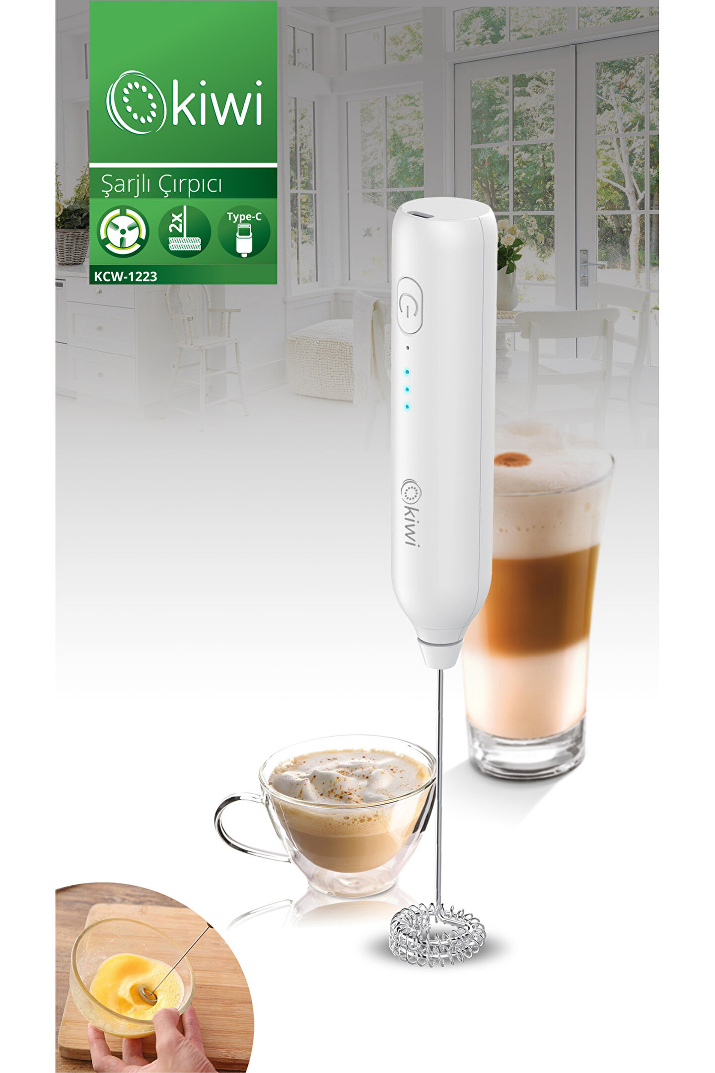 Kiwi Kcw-1223 Pratik Şarjlı Süt ve Kahve Köpürtücü Beyaz