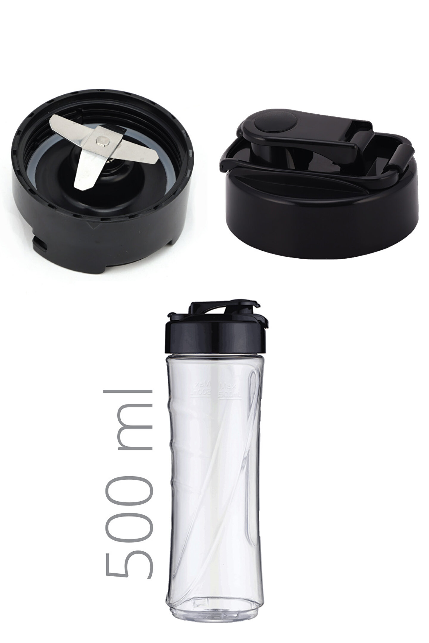 Smoothieler, diyet shake'lerve protein içecekleri için idealdir.; 500 ml BPA içermeyen ergonomik şişe Özel olarak tasarlanmış sızdırmaz içme kapağı Paslanmaz çelik bıçaklar Kaymayan ayaklar Tek düğmeyle kullanım Kullanımı ve temizliği kolaydır