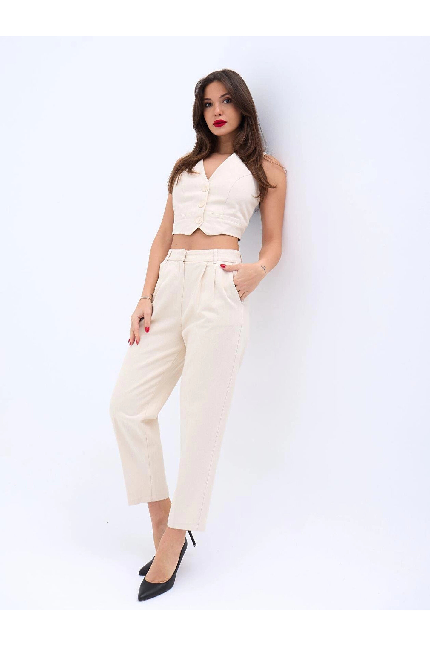 Modelin Ölçüleri: Boy:165, Kg:55, Göğüs:90, Bel:72, Kalça: 100