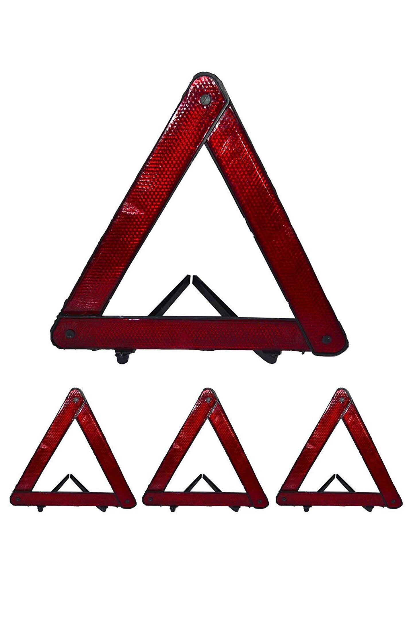 Üçgen Reflektör Ekonomik Muayenede trafik setleri için iki Adet gerekmektedir; Ekonomik amaçlı üretilmiştir; Plastik ayaklıdır; 8 adet olarak gönderilmektedir;