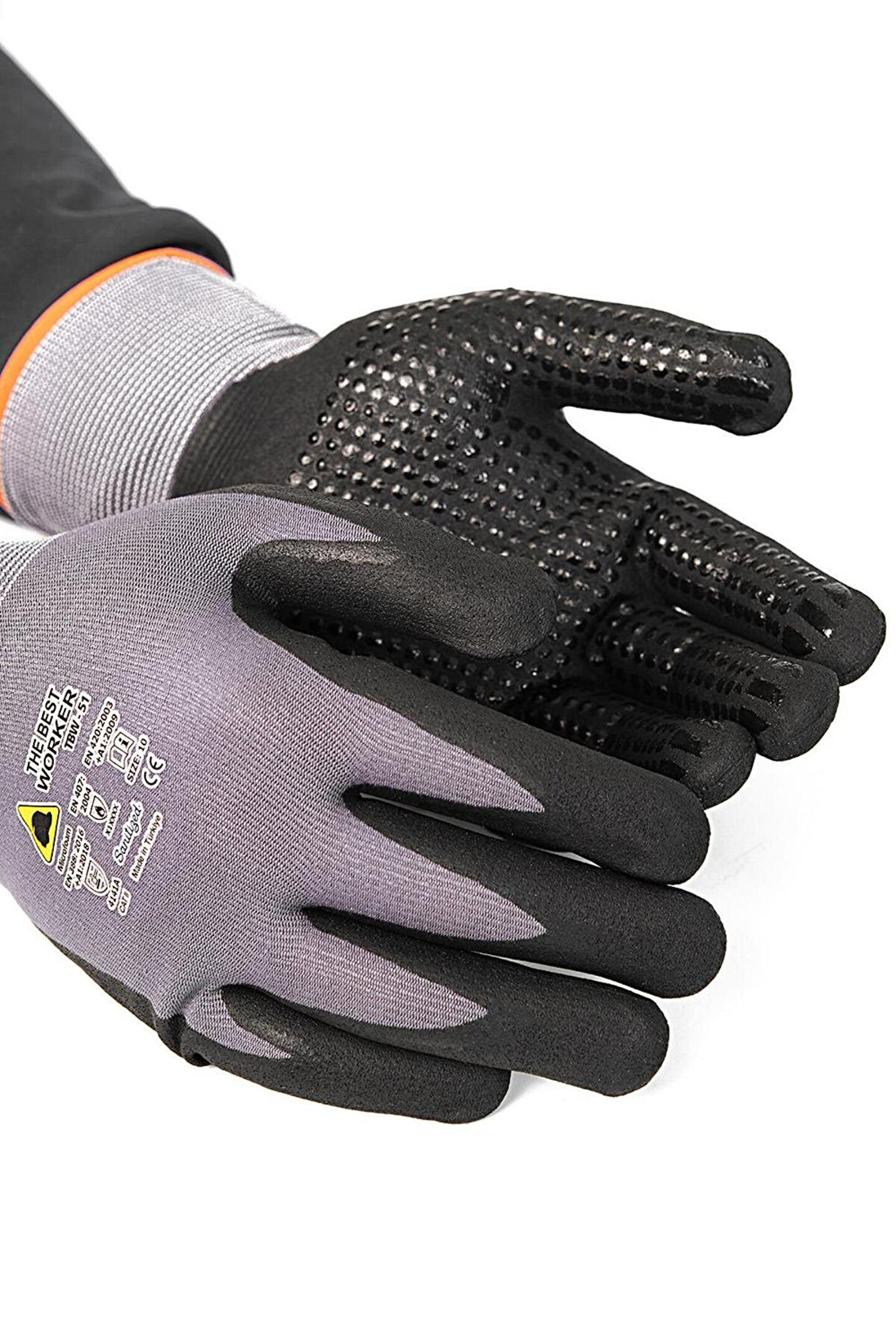 4141A EN388:2016 EN ISO 21420 Ürün özellikleri: 15G Naylon /Spandeks astar ,geliştirilmiş özel mikroköpük formülü sayesinde aşınmaya ekstra dayanıklıdır.Hava geçirgen özelliğine sahiptir ve uzun kullanım ömrü sağlar. Kaplama üzeri mikro noktalar (dotlar) eldien dayanıklığını arttırt. Hassasiyet gerektiren ve tekrarlayan uygulamalarda daha fazla korunma ve uzun kullanım avantajı sağlar. Kullanım alanlları: Beyaz eşya montajı; Bakım; İnşaat; Metal işleme ve uçak bakımı; Bahçe işleri; Plastik enjeksiyonu ve kalıplama ; komponentlerin toplaması ve sabitlenmesi; plastik enjeksiyonu; elektronik;