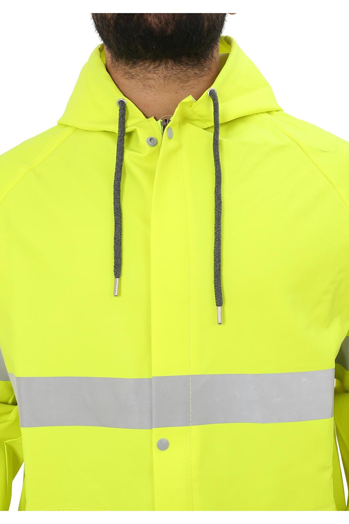 KKDAVM Yüksek Görünümlü Reflektörlü Dikişsiz Fermuarlı Yağmurluk Alt Üst Takım Pvc Su Geçirmez