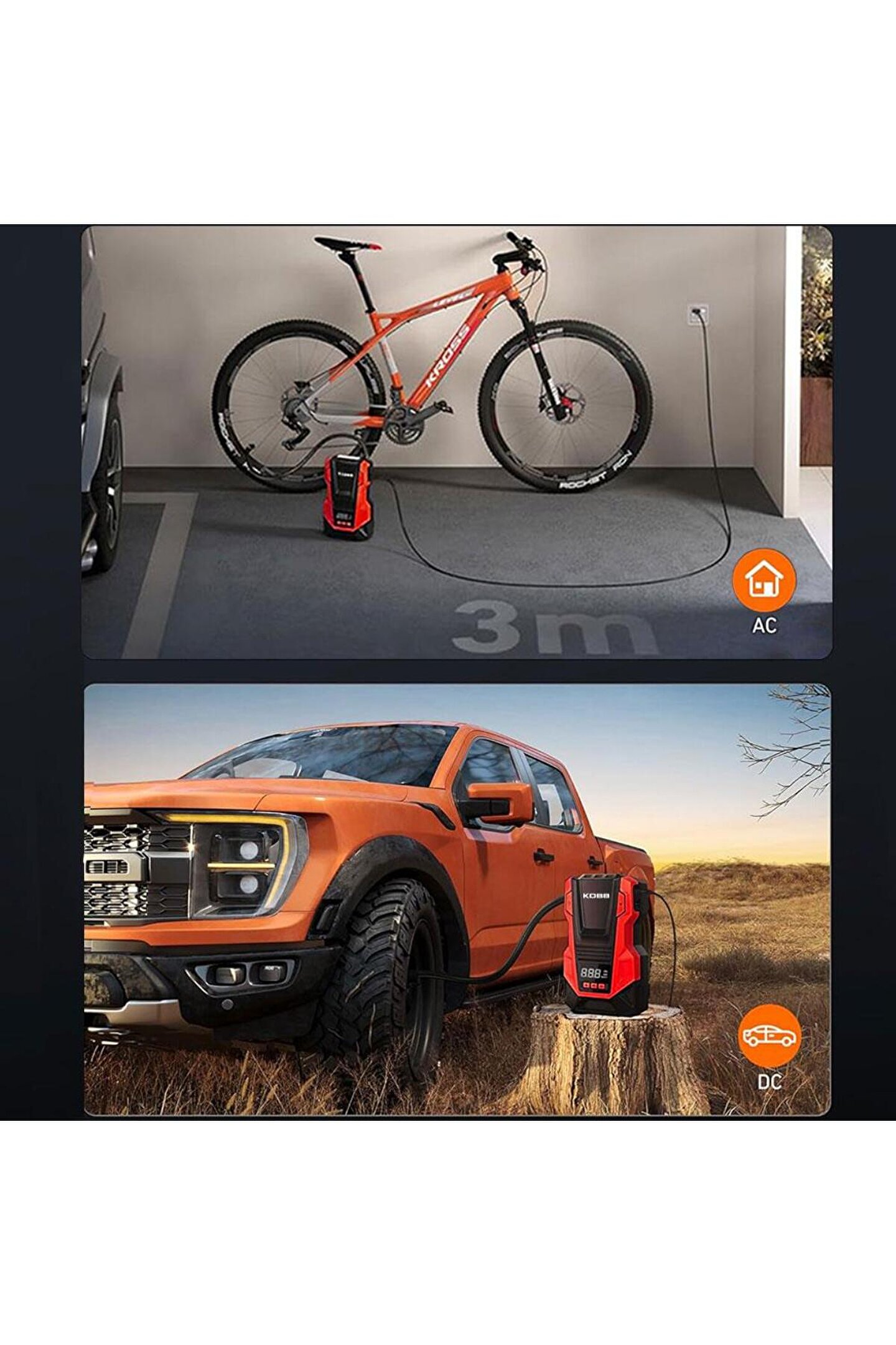 •Güçlü 150 PSI / 10.3 Bar şişirme gücü ile Otomobil, motosiklet, cip ve bisiklet lastikleri, toplar, kombi ve hidrofor genleşme tankları vb.; şişirmek için üstün sunar.; •Üstün KOBB teknolojisi sayesinde toplamda 2 farklı çalıştırma sistemi;•Dahili 220Volt şebeke elektriği ile tüm ev, iş, ofis vb.; elektriğin olduğu tüm mekanlarda kullanım imkânı.; •12Volt araç çakmak girişine bağlanarak tüm araçlarda kullanım imkânı,•Hem 220Volt şebeke elektriği ile hem de 12Volt araç çakmak girişine bağlanarak tüm araçlarda ve 220Volt elektriğin olduğu tüm mekânlar da kullanım imkânı,•150 PSI’e kadar üstün şişirme performansı sağlar,•ÜSTÜN KOBB TEKNOLOJİSİ•Dakikada 25L hava basma özelliği ile sınıfının en yüksek hava basınç performansı sağlar.; •54cm Lastik şişirme basınç hortumu ile yüksek basınç elde edilerek top, bisiklet ve otomobil lastiklerini kolaylıkla şişirmede kullanılır.; •Ayarlanabilir Dijital basınç göstergesi uygulamaya göre hassas basınç yapılmasını sağlar, hava pompalama ayarlanan basınç değerine ulaşıldığında otomatik olarak kesilir.; •Çok amaçlı birçok şişirme uygulamasını gerçekleştirebilme imkânı,•Kompakt Taşınabilir, hafif, sağlam ve Aerodinamik tasarım ile kullanım kolaylığı sağlar,•Bez taşıma çantası ile pompa ve aksesuarlarınızı temiz ve toplu bir şekilde muhafaza etme imkânı.; •Basınca dayanıklı özel 54cm hortum ile geniş kullanım alanı sağlar,•Entegre Led ışık sayesinde karanlıkta harita okuma, lastik şişirme gibi işlemlerde rahat çalışma imkânı,•Işıklandırılmalı basınç göstergesi ile karanlıkta bile çalışma imkânı,•3 Adet şişirme ucu geniş kullanım alanı sağlar,•KOLAY KULLANIM•Mandallı lastik şişirme ucu ile kolay ve sağlam montaj edilir hassas şişirme sağlanır, •Top şişirme ucu ile faklı özellikteki tüm top ve benzeri ürünleri şişirme imkânı,•220Volt ile çalışma özelliği sayesinde, ev, ofis, okul, mağaza, hastane vb.; tüm yaşam alanlarında kullanım imkânı,•Hassas ölçüm yapabilen dijital basınç gösterge ile doğru ve kolay basınç ölçme imkânı,•PSI & BAR & Kg/cm² göstergeli Led aydınlatmalı dijital ekran saati,•Ergonomik tasarım sayesinde konforlu kullanım,•Hortum ve şişirme uçları aletin üzerinde ki bölmede saklanır, sürekli kullanıma hazırdır,•Kauçuk kaplı ayaklar sayesinde kaymadan kullanım imkânı,•Kompakt tasarım ve bez taşıma çantası ile rahatlıkla muhafaza etme imkânı sağlar, •Güç: 12Volt DC / 120Watt AC•Hava Çıkış Hacmi: 25Lt.; /dk.; •Max.; Hava Basıncı: 150 PSI / 10.3 Bar.; •Basınç Birimleri: PSI/BAR/KG-CM²•Max.; Akım: 15A (12V)•12V Çakmaklık Kablo uzunluğu: 3m•220V Kablo Uzunluğu: 1,5m•Ölçüler: 12,5 x 6,5 x 22cm•Ağırlık: 2,15 Kg.; •Standart Ekipman: 1 Adet 3m 12V Çakmaklık Güç Kablosu, 1 Adet 1,5m 220V Güç Kablosu, 3 Adet Şişirme Ucu, Bez Taşıma Çantası