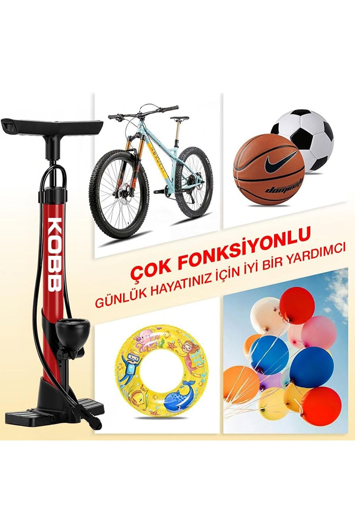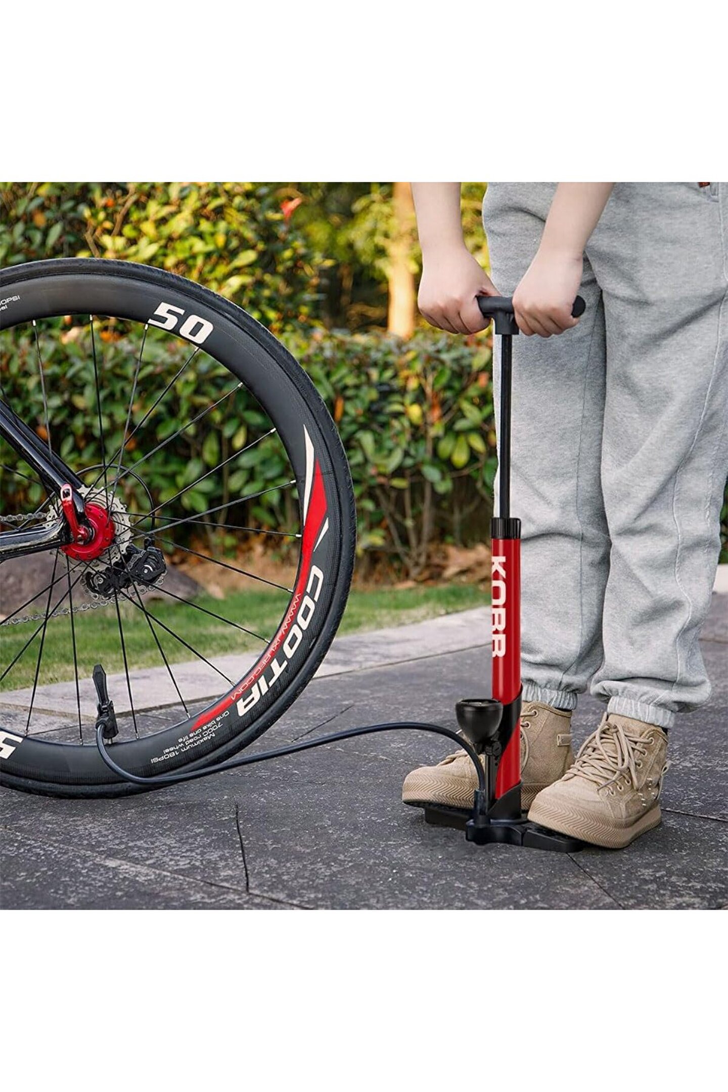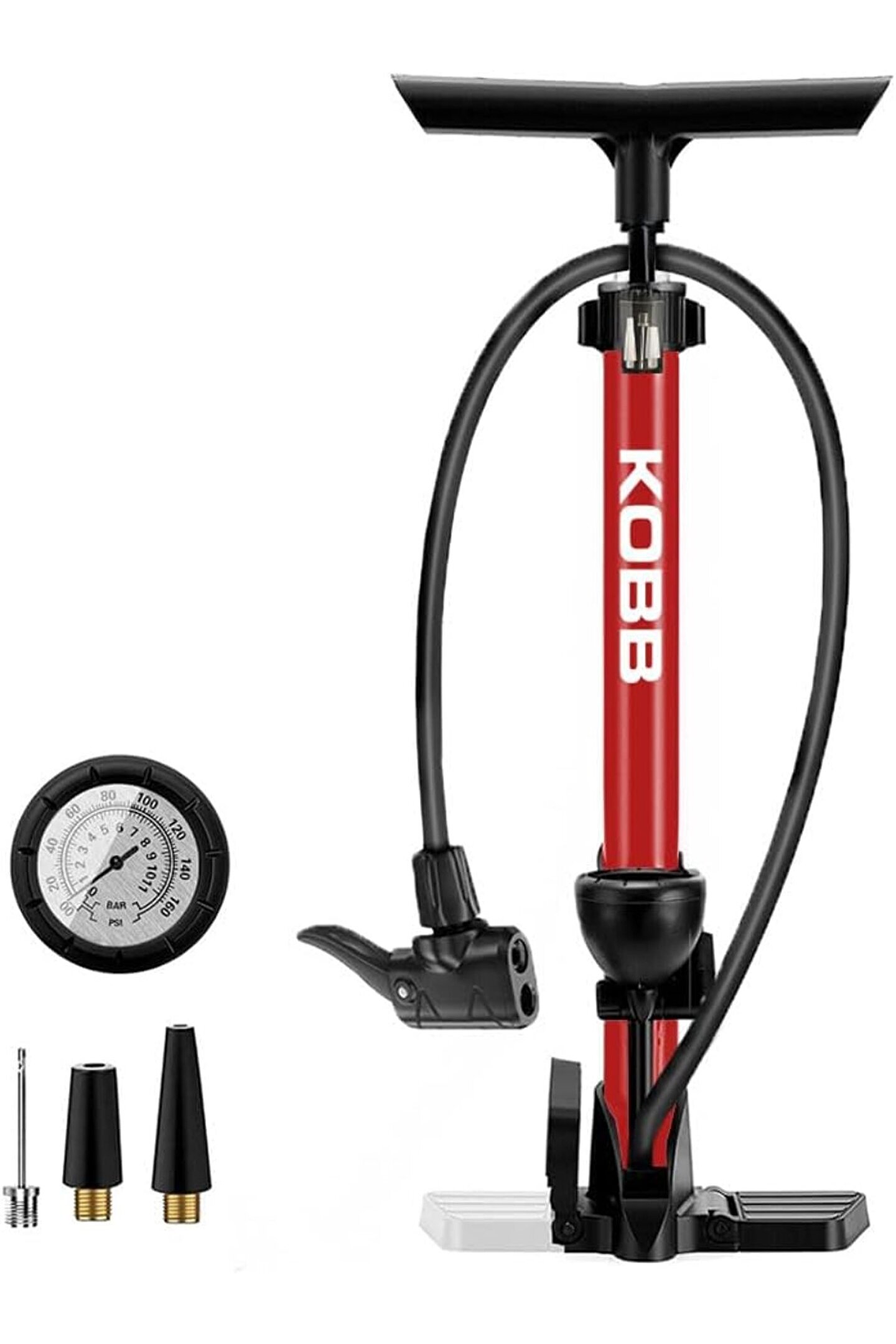 KOBB KB3848 87 PSI Analog Basınç Göstergeli Taşınabilir El Pompası, KırmızıSiyah
