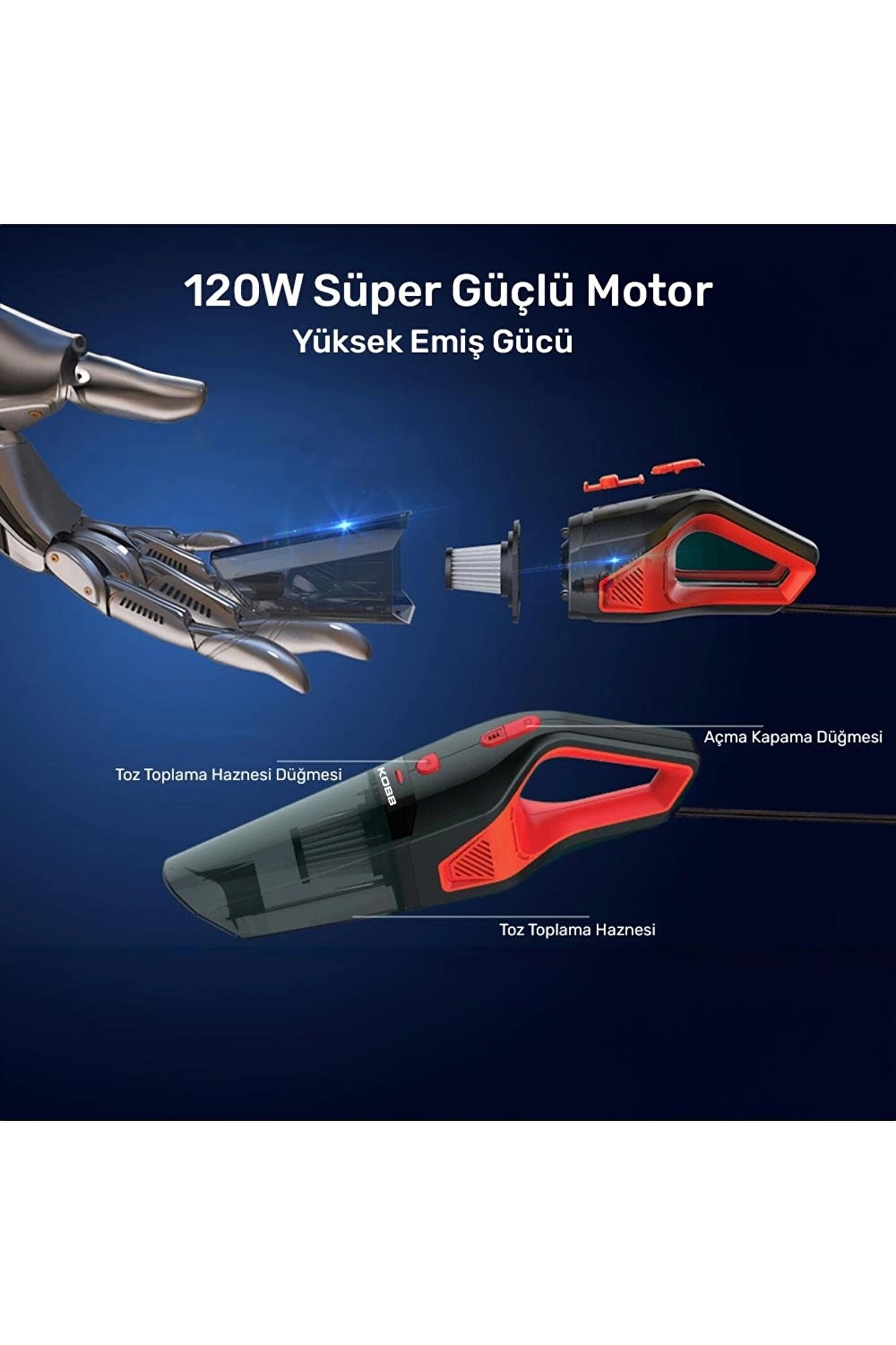 • KOBB KBV12 12Volt/120Watt Araç Süpürgesi + 5 Parça Aksesuar Seti + Taşıma Çantası • 12Volt/120Watt yüksek motor ve yüksek çekim gücü ile tüm rakiplerinden daha güçlü ve yüksek .; • Güçlü 5Kpa 6L/Sn.; emiş gücü ile otomobil, karavan, midibüs vb.; araçların koltuk, paspas, bagaj alanı ve yer döşemesindeki tozu ve kiri mükemmel bir şekilde temizlemenizi sağlar.; • 12Volt çakmaklık soketi ile tüm araçlarda kullanıma uygundur.; • Siklonik toz ayırıcı HEPA filtreleme teknolojisi sayesinde hava ile birlikte tozu etkin bir şekilde ayrıştırarak toz filtrelenir, temiz hava tahliye edilir.; Bu sayede yüzeydeki toz maksimum seviyede filtrelenerek kullanıcı konforunu artırır ve uygulama alanının temiz kalmasını sağlar.; • Kolay temizlenebilir ve yıkanabilir HEPA filtre sayesinde tozun dışarı çıkması engellenir, hijyenik çalışma ortamı sağlar.; • Araç içerisinde her yere ulaşmanızı sağlayan 4,5 metre uzunluğunda çakmaklık kablosu ile tüm alanlara kolay erişim sağlar.; • Ergonomik tasarım sayesinde konforlu kullanım, • Hızlı aksesuar değişimi için tak-çıkar sistem son derece kompakt uzun ve esnek emme borusu ve aksesuarları sayesinde koltuk araları, pedal altları, kapı cepleri ve bardak tutucu yuvaların temizliğinde kolaylık sağlar.; • 35cm esnek uzatma borusu ve emme aparatları ile dar ve derin alanlara kolay erişim sağlar.; • Geniş fırça aparatı sayesinde büyük kir parçalarını kolaylıkla çeker, temiz görünüm kazandırır.; • Geniş fırça başlığı ile koltuklarda ve havalandırma ızgaralarında derinlemesine temizlik sağlar.; • Tek düğme ile toz haznesi boşaltma özelliği sayesinde kirler ele temas etmeden çöp kovasına boşaltılır, • Şeffaf toz toplama haznesi ne zaman boşaltılması gerektiğini görmenizi sağlar.; • Araç aküsüne zarar vermeden maksimum temizlik sağlar.; • Not: Araç çalışır durumdayken süpürge kullanıldığında emiş gücü daha yüksek olacaktır.; • Güç: 12Volt / 120Watt • Çekim Gücü: 5.0kPa / 5000pa • Ses Seviyesi: 64dB • Kablo uzunluğu: 4,5m • Ağırlık: 0,75 Kg.; • Standart Ekipman: 1 Adet 35cm Esnek Uzatma Hortumu, 1 Adet 50mm Fırçalı Temizlik Başlığı, 1 Adet Dar Alan Emiş Başlığı, 1 Adet Dar Emiş Bağlantı Aparatı, 1 Adet Hortum Bağlantı Aparatı, 1 Adet Taşıma Çantası.