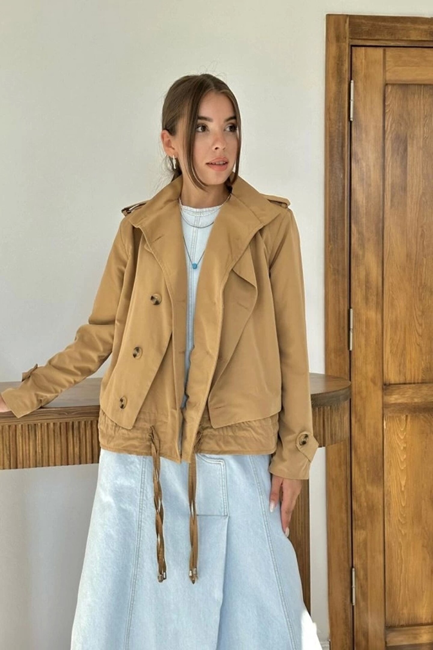 Kokosh moda Gelirr Camel Çift Katlı Kısa Ceket