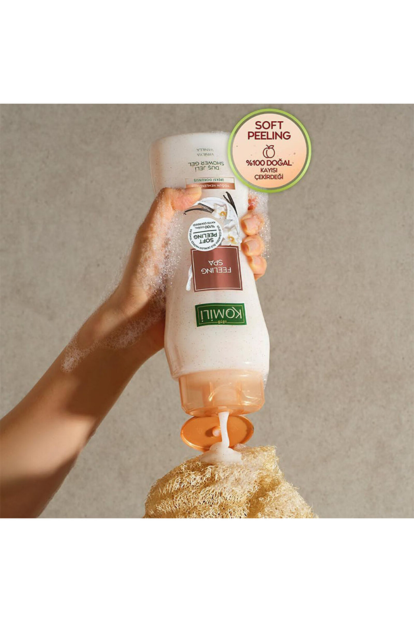 ? %100 kayısı çekirdeği parçacıkları içeren soft peeling etkili duş jeli cildinizde pürüzsüz ve yumuşacık bir his bırakır; Cildinizi ölü derilerden arındırır; ? 50binin üzerinde scrub tanecikleri ? %100 doğal, yenilebilir mısır tanelerinden elde edilen Pentavitin sayesinde cildinizi nemlendirir; ? Long; lasting deep hydration etkisine sahip Pentavitin içerir; ? Nem mıknatısı etkisine sahip Pentavitin içerir; ? Yoğun köpük veren formülü ile cildinizi derinlemesine temizler;