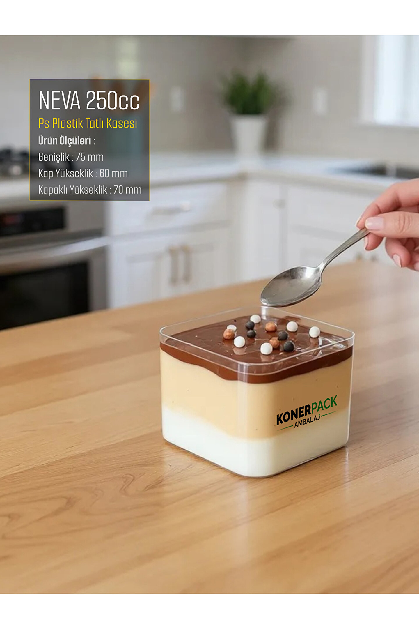 KONERPACK 48 Adet Kapaklı Şeffaf Renk Sert Plastik Magnolya Kasesi Sütlü Tatlı Kasesi