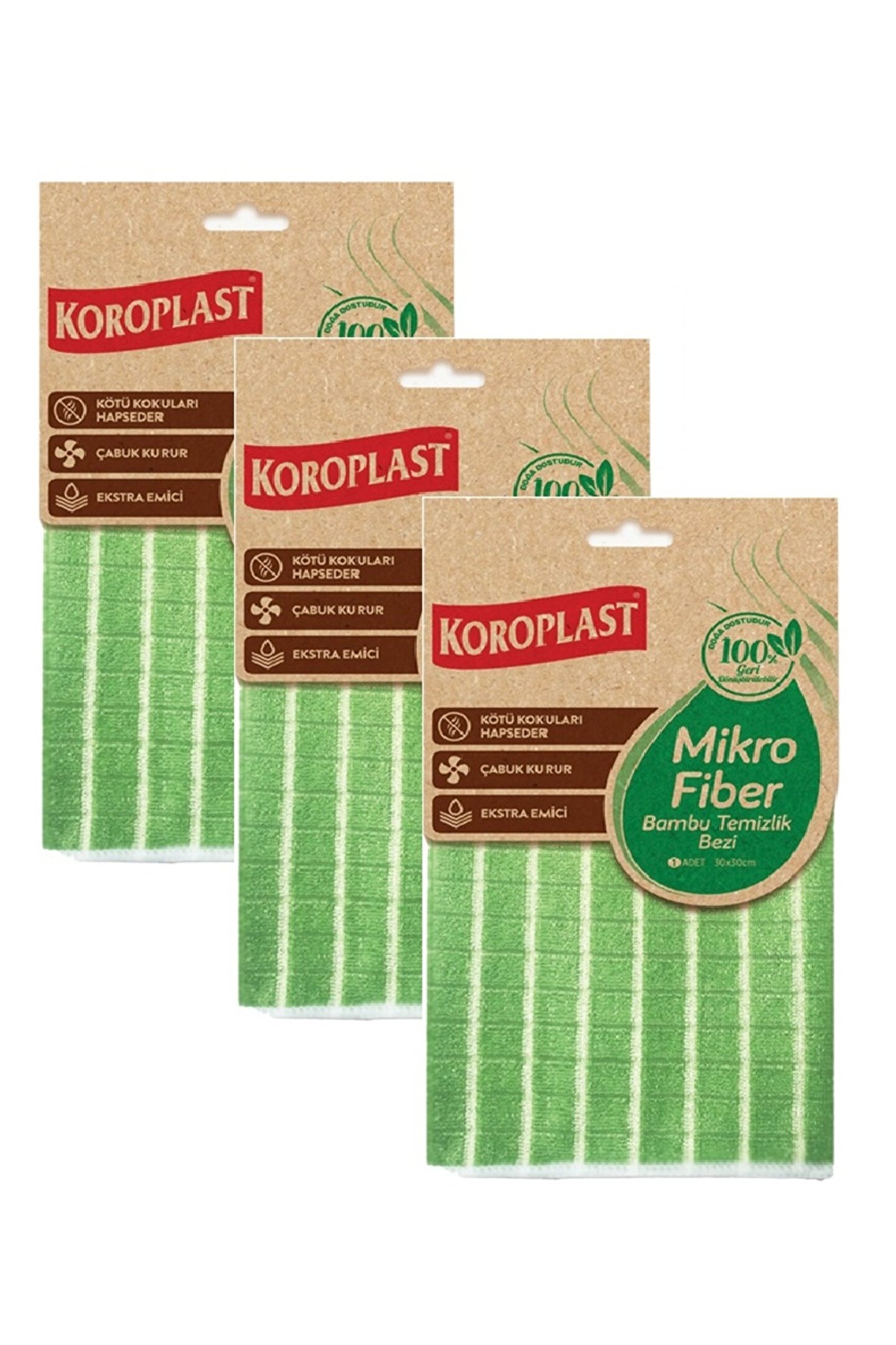 KOROPLAST Bambu Özlü Mikrofiber Temizlik Bezi 30 x 30 Cm x 3 Adet