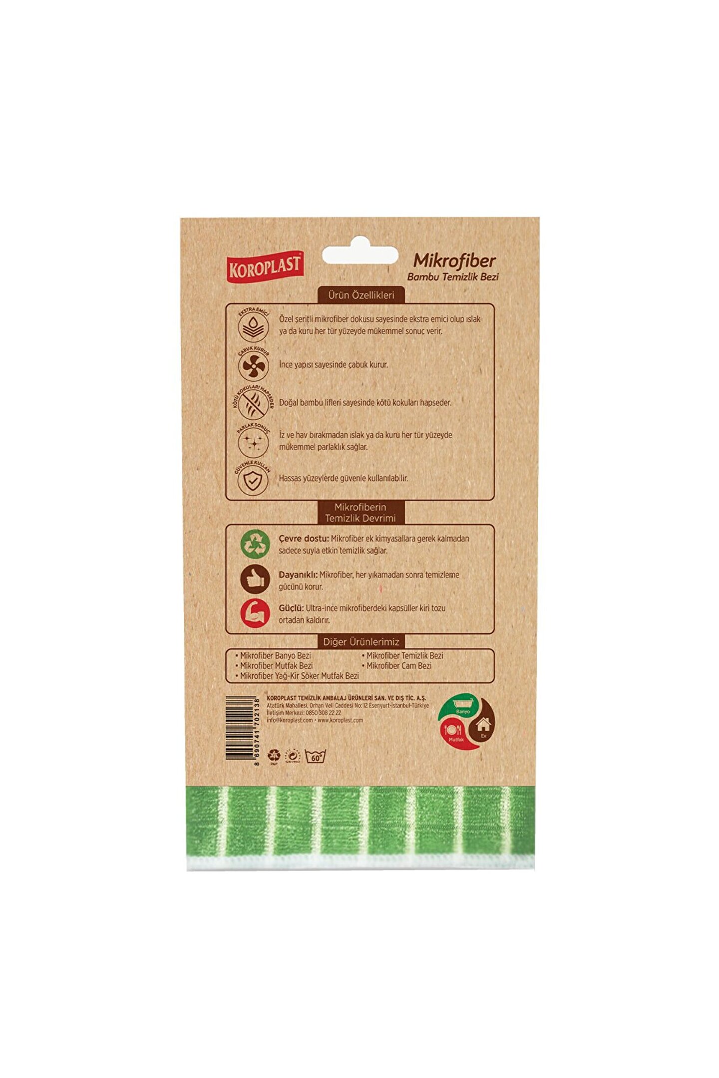 - MİKROFİBER TEMİZLİK BEZİ: Koroplast Mikrofiber Temizlik Bezi, yüksek emici yapısı ve bambu lifleri sayesinde kiri ve tozu kolayca hapseder. Çizik bırakmadan temizlik yapar, cam, ayna, mutfak tezgâhı, paslanmaz çelik, mobilya, ekranlar ve araç içi yüzeylerde güvenle kullanılabilir. Tekrar yıkanabilir, uzun ömürlüdür ve çevre dostu bir temizlik deneyimi sunar