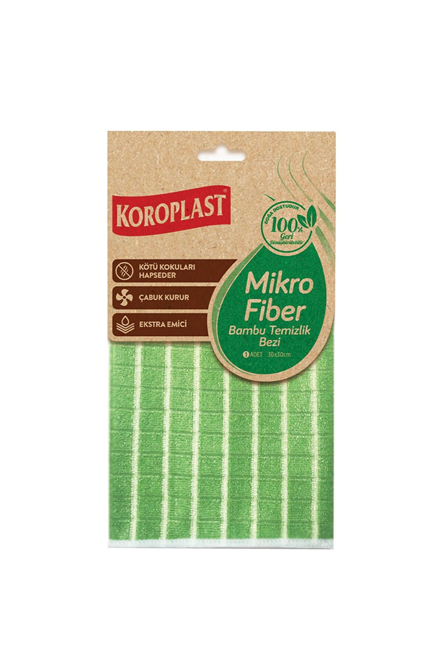 Koroplast Mikrofiber Bambu Temizlik Bezi Tekli 30x30 cm, yüksek emici ve hızlı kuruyan yapısıyla her türlü temizlik işinde mükemmel sunar. Doğal bambu lifleri sayesinde kötü kokuları ve zararlı maddeleri emer, ıslak veya kuru her yüzeyde iz ve hav bırakmadan parlaklık sağlar.