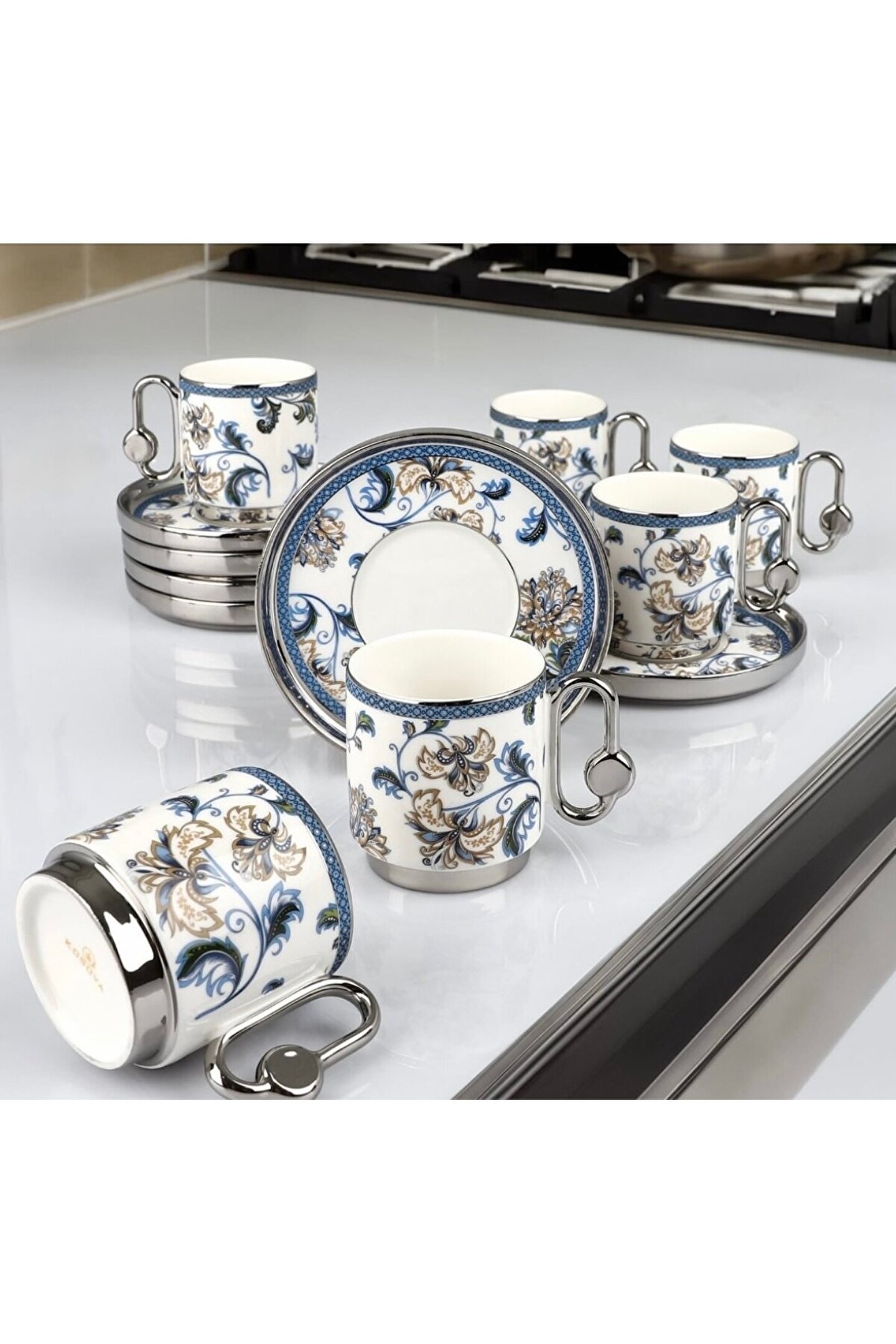 Yeni Tasarım Gümüş Detaylı Vintage Kahve Fincan Takımı Rsy-242