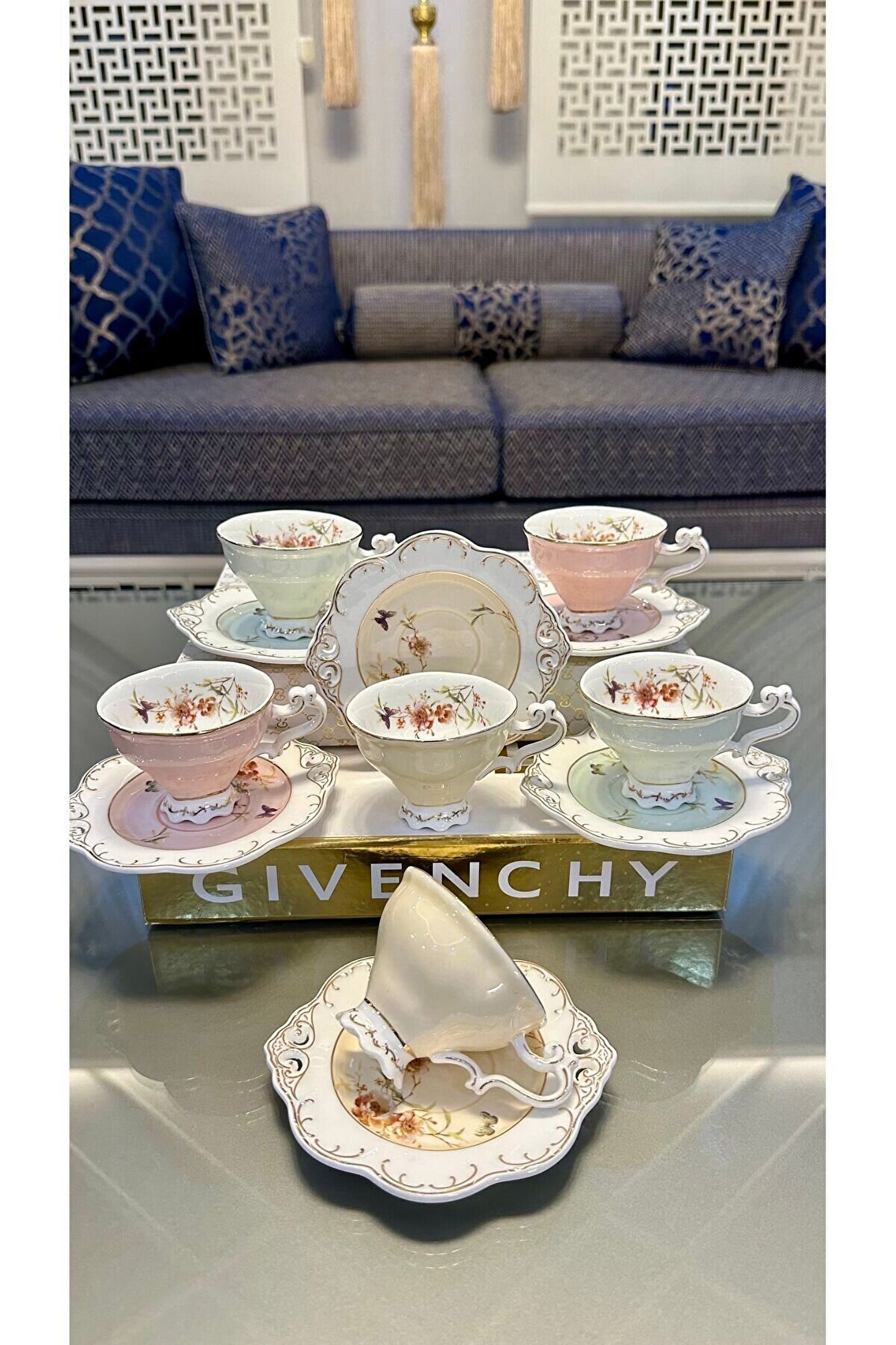Lacivert Gold Desenli Lüks 6’lı Porselen Kahve Fincan Takımı