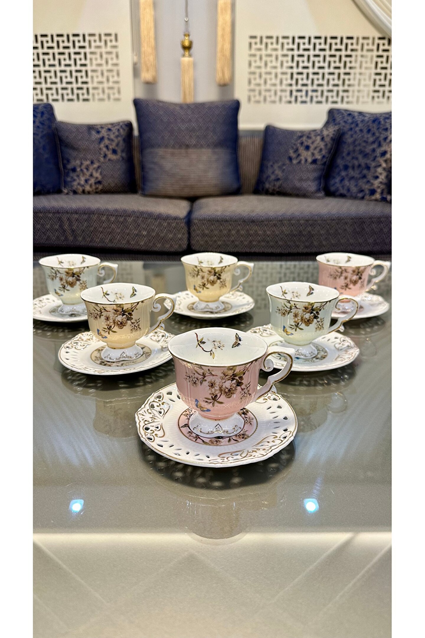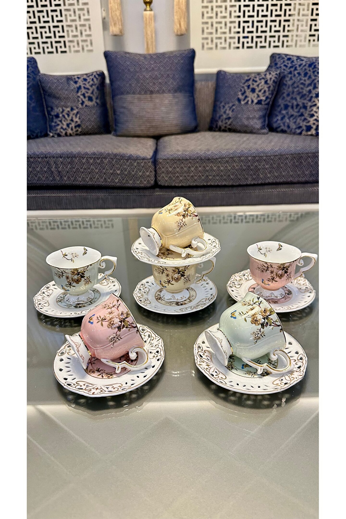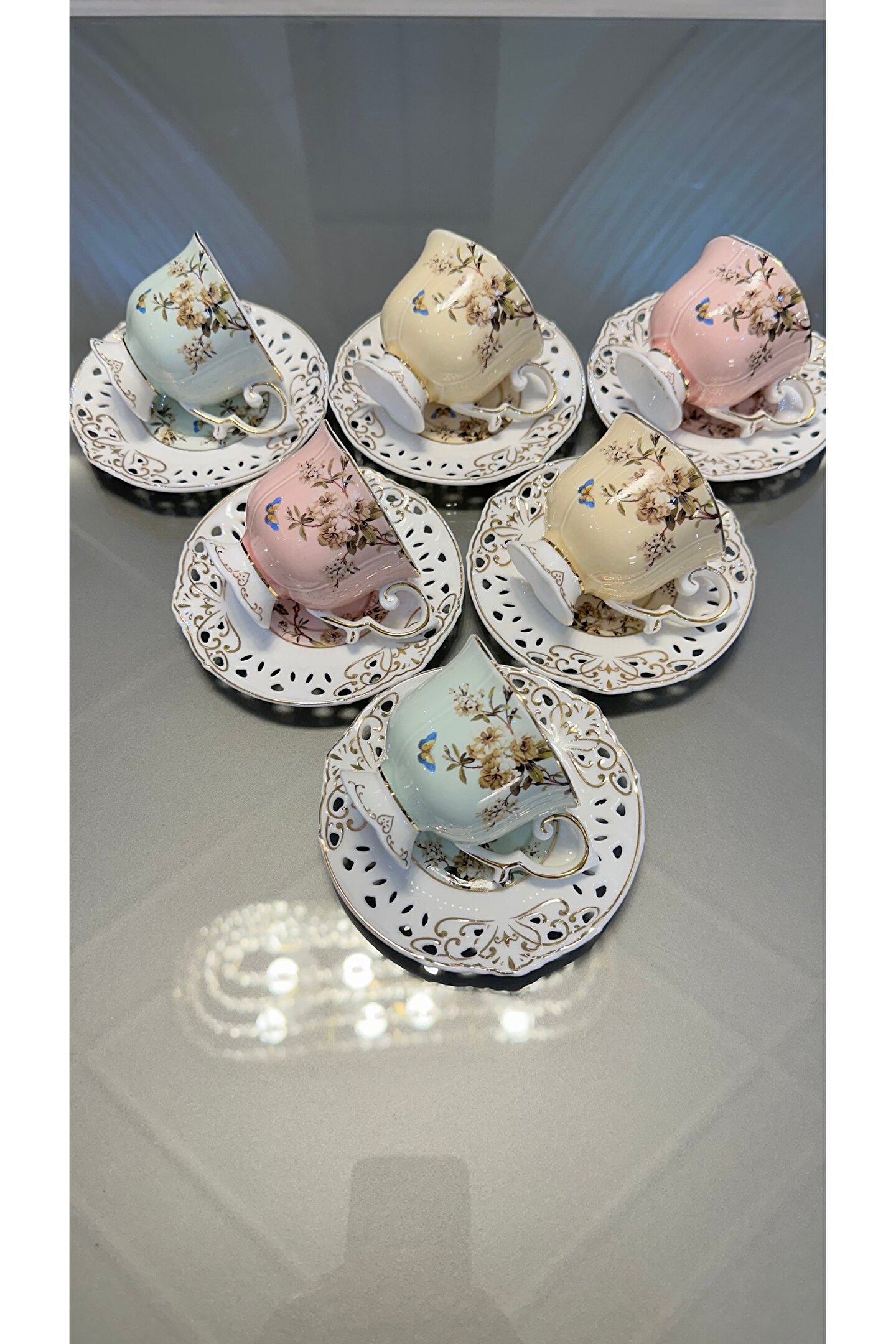 6 Kişilik 12 Parça 3 Renkten Oluşan Güllü Ayaklı 1.Kalite Kahve Fincan Takımı Seti 90 ml Almaktadır Uzun Ömürlü Olması İçin Elde Yıkamayı Tavsiye Ediyoruz