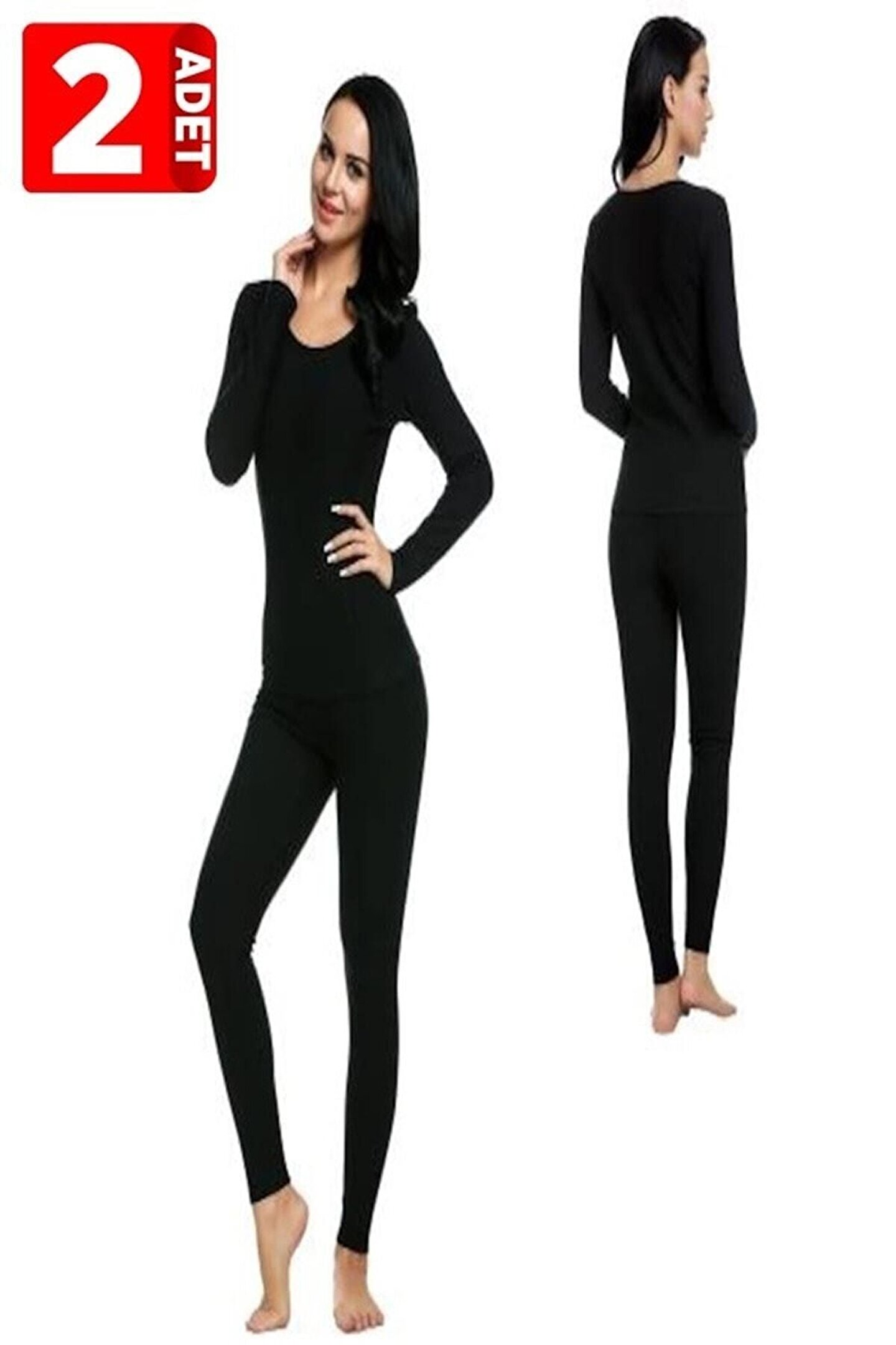 KOTA Kadın Siyah Büyük Beden Termal İçlik Takım 2Li Paket
