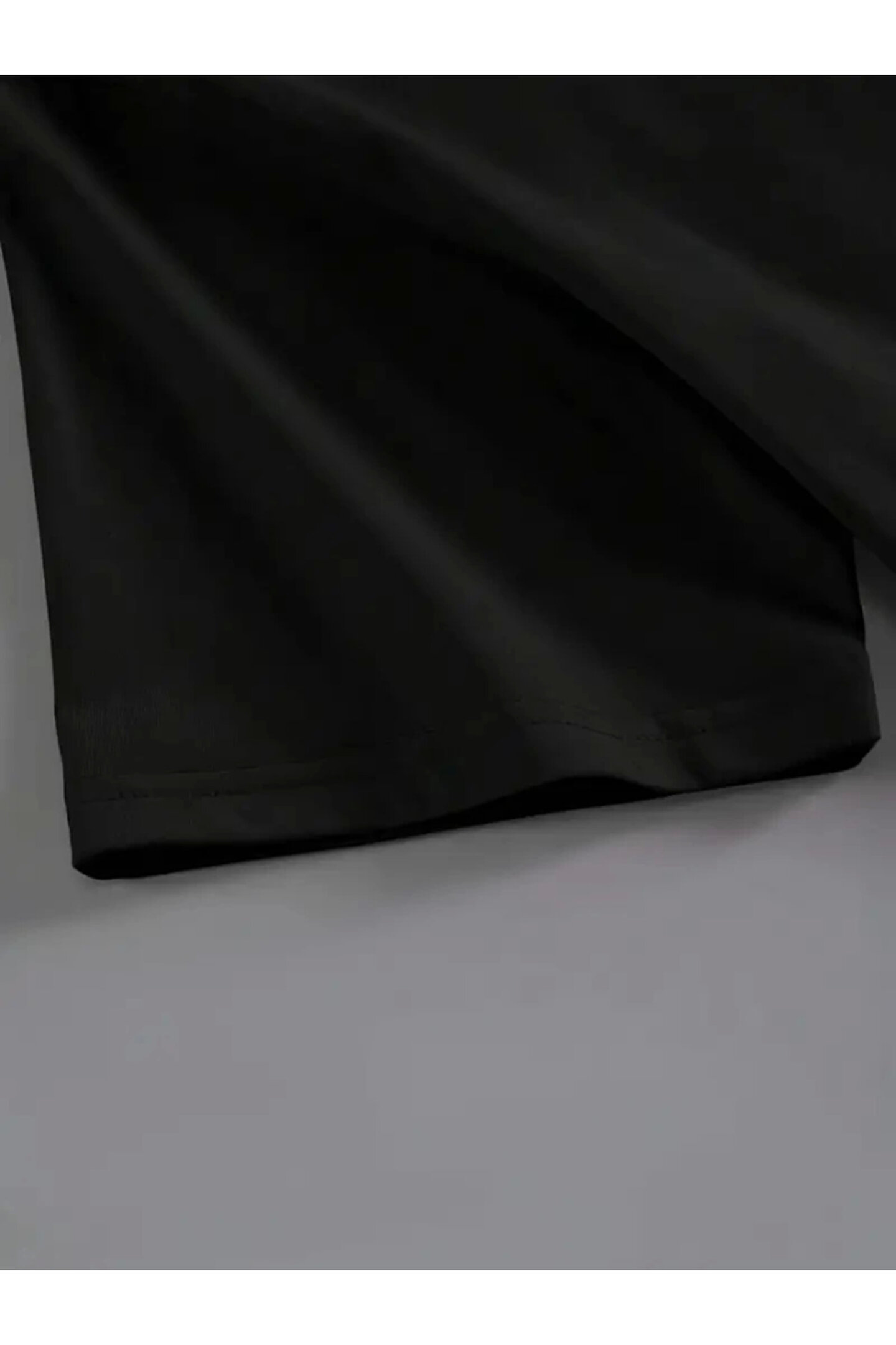 KOZMERA BUTİK Dua Giyim Baskılı Oversize Bisiklet Yaka T-shirt - Siyah