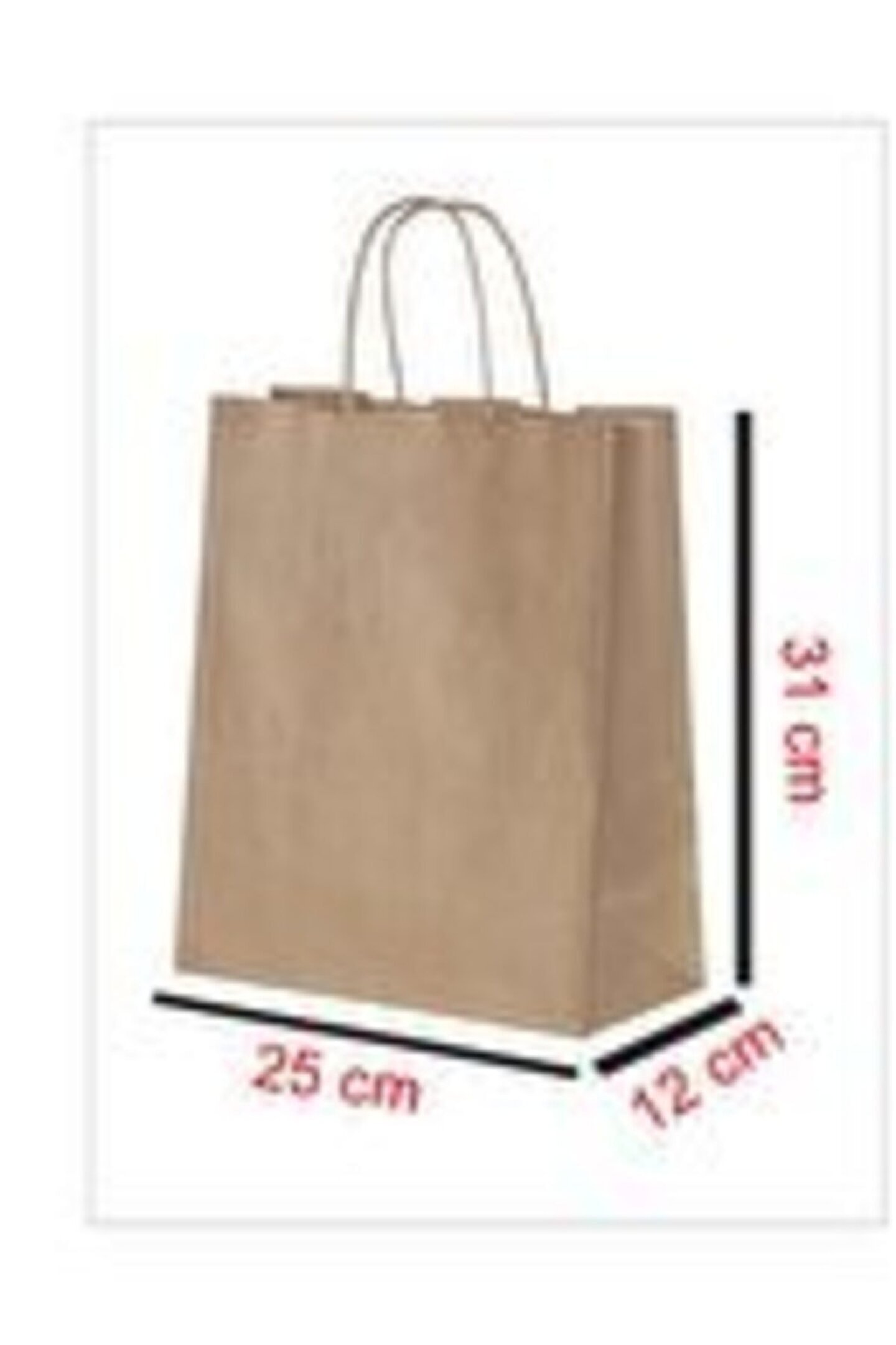 Ürün ölçüsü : En: 25 cm x boy: 31 cm körük: 12 cm ( 10 adet ) Kağıt poşet çanta Kraft kağıt çanta Cafe ve restautrant paket sevrvis kullanımı için Hazır yemek sektöründe kaliteli hizmet ve servisi benimseyen , müşteri memnuniyeti odaklı çalışan işletmelerin paket servislerinde sıklıkla kullandığı bir üründür. ; 90 gr kraft kağıttan üretilir. ; Sağlam ve dayanıklı yapısı, sağlam tutma yeri, farklı ölçü seçenekleri ile siz değerli müşterilerimize çözüm sunar.;