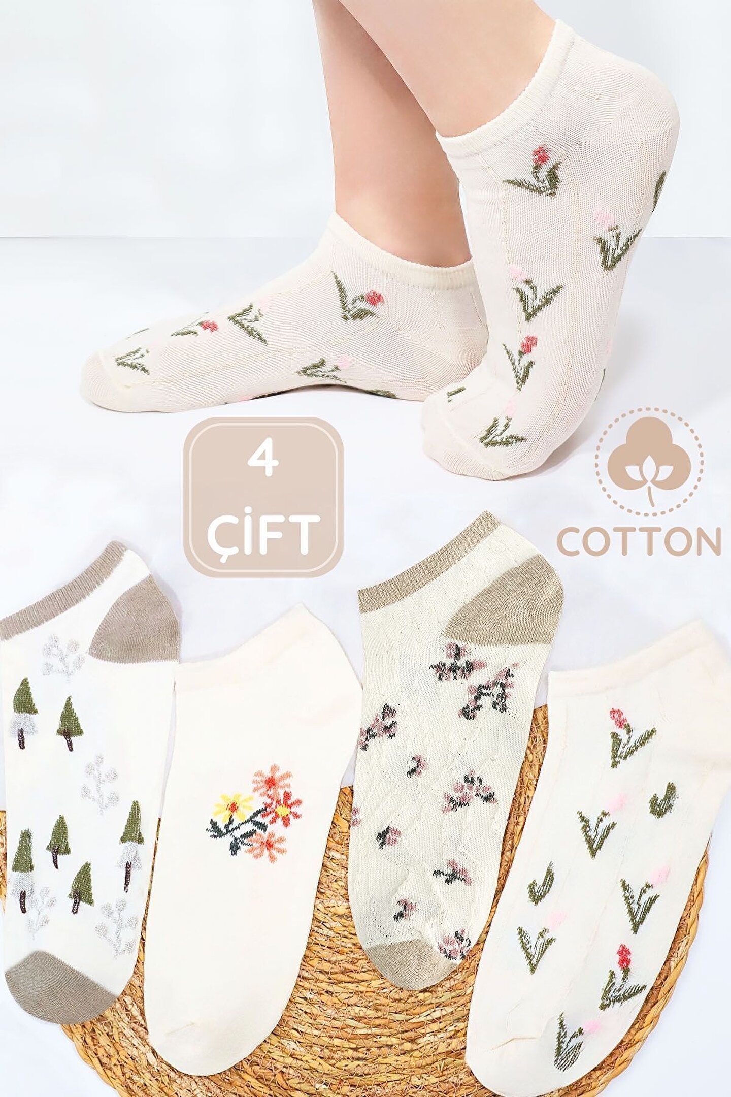 4 Çift Kadın Çorap (Trend) Desenli Kısa Patik Çorap Yeni Sezon