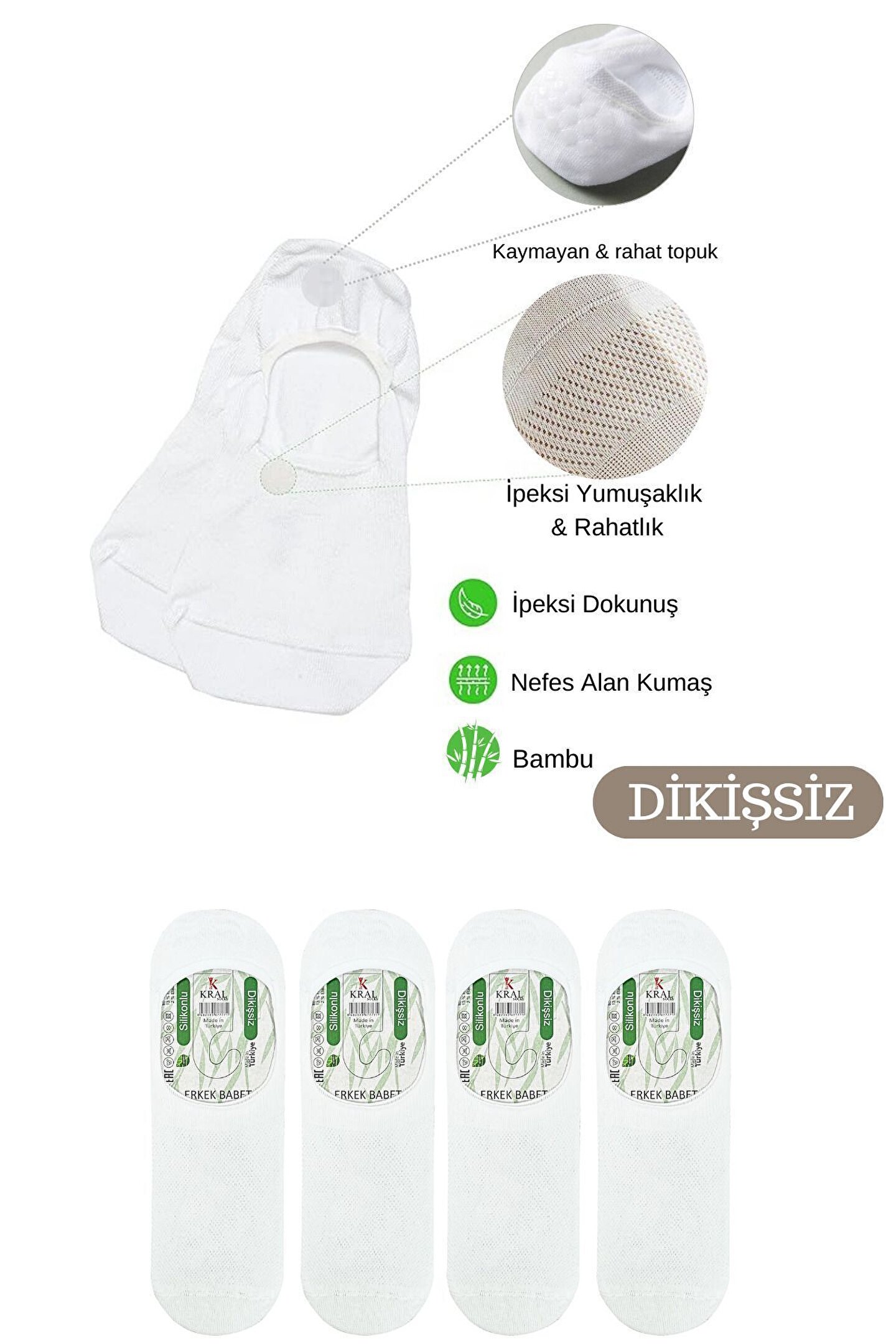 Erkek Bambu Babet Çorap Dikişsiz Yıkamalı Parfümlü Silikonlu Babet Çorap Parfümlü Ürünlerimizde kullandığımız yüksek BAMBU LİFİ iplikleri sayesinde ayaklarınızdaki yumuşacık dokunuşun rahatlığını gün boyu hissedeceksiniz. ; Çoraplarımızın ter emici özelliği ile beraber burun ve topuklarında kullanılan extra takviyeleri sayesinde kolay aşınmaz ve uzun süreli kullanıma uygundur. ; 36-40 VE 40-44 OLARAK İKİ BEDEN ARALIĞI MEVCUTTUR. ; İmalat bandımızda kullanılan yüksek teknoloji ile ürünlerimizin ölçü ayarları sayesinde dönme ve çıkma yapmaz ve ayağınızda yumuşak bir dokunuş hissi vererek sarıp sarmalar. ; 4 ÇİFT OLARAK TARAFINIZA GÖNDERİLECEKTİR.;
