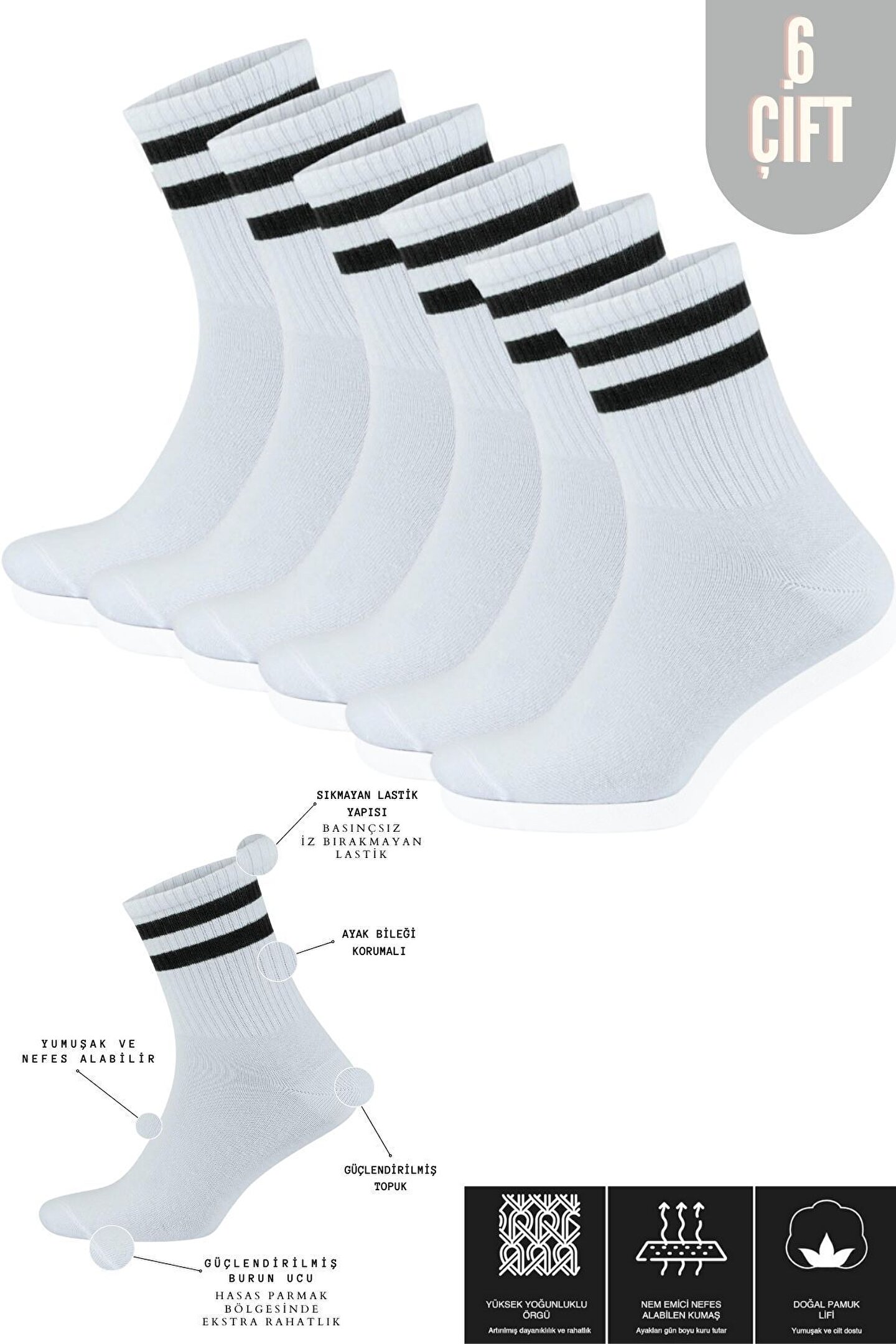 Erkek Kadın (6 ÇİFT) Çizgili Kolej Tenis Çorabı Pamuklu Terletmez Çorap