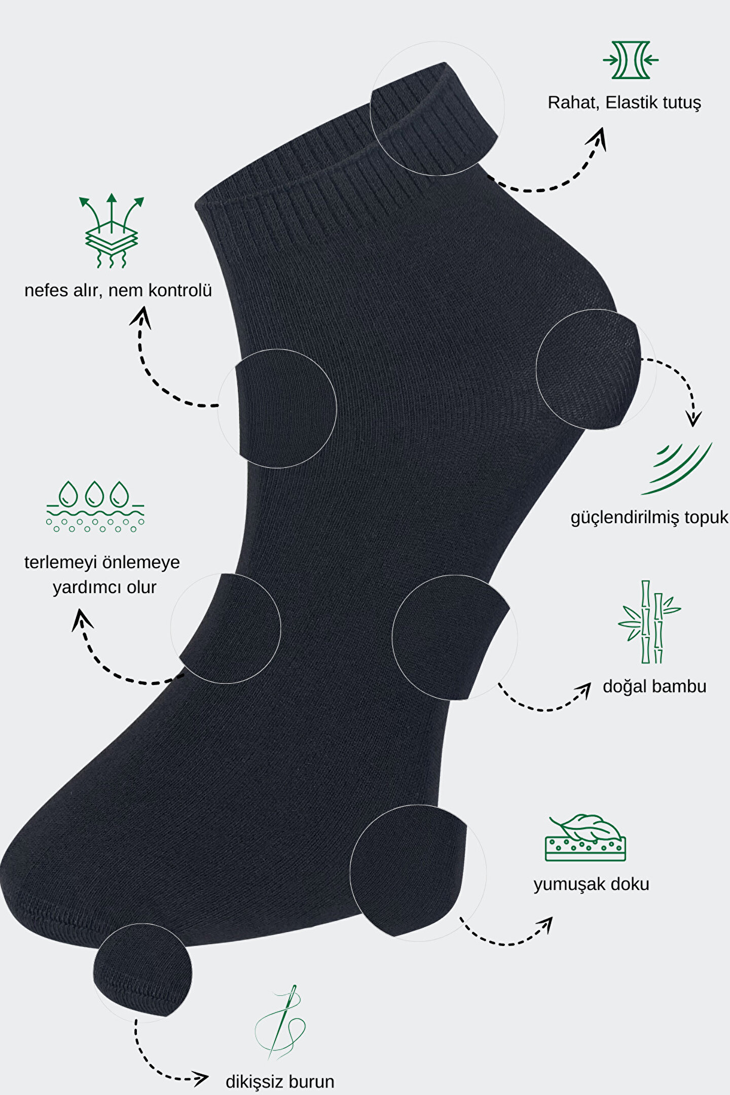 Bambu dokuma teknolojisi sayesinde ayaklarınız gün boyu nefes alır ve konforlu bir deneyim sunar; Her yaş grubuna uygun tasarımıyla geniş bir kullanıcı yelpazesine hitap eder; Lastikli tasarımı ile kolayca giyilip çıkarılabilir ve mükemmel uyum sağlar; Düz deseniyle sade ve şık bir görünüm elde edilir, her türlü kıyafetle kolayca kombinlenebilir; Su itici özelliği sayesinde ıslak zeminlerde bile ayaklarınız kuru kalır; Parfümlü yapısıyla hoş bir koku sunarken, bambu materyalinin doğal kokusu da hissedilir; %85 bambu içeriği ile yumuşaklık ve dayanıklılık bir arada sunulurken, %12 elastan esneklik sağlar;