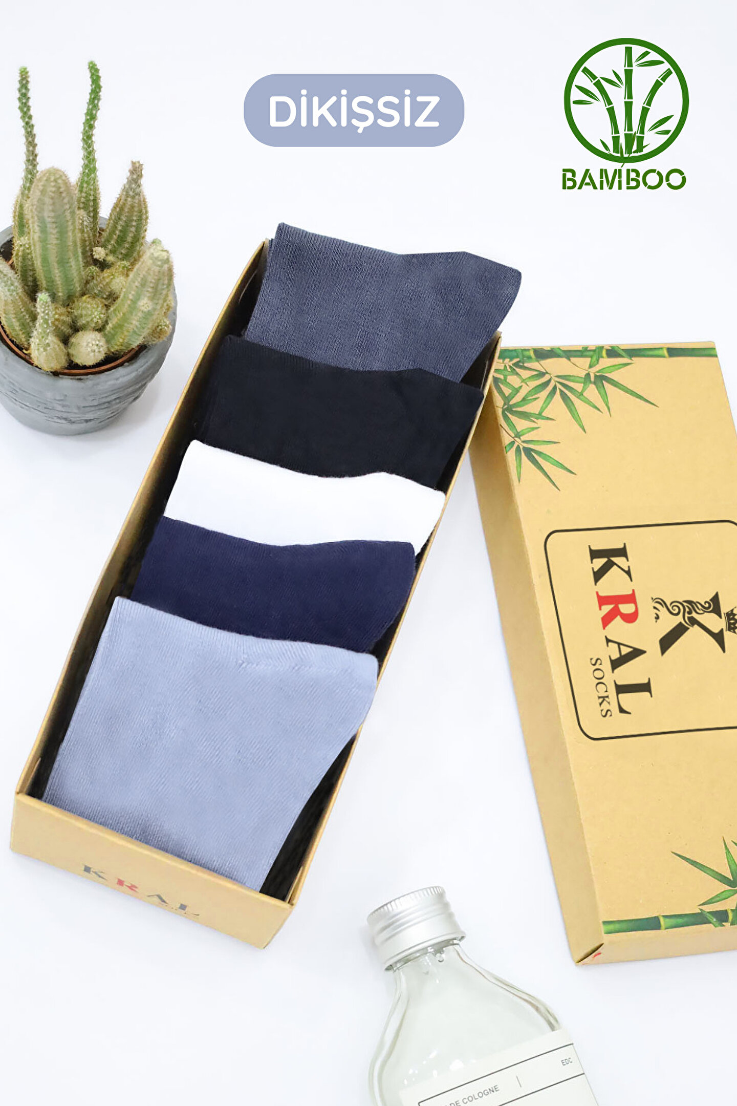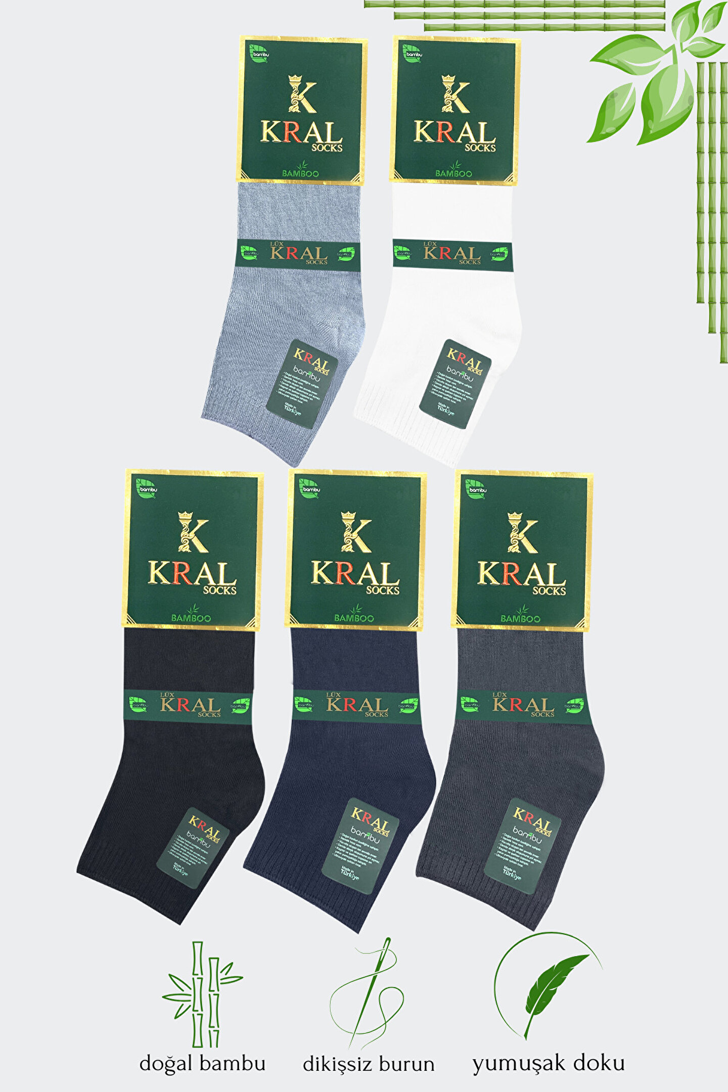 KRAL SOCKS Erkek Bambu Çorap Düz Desen ( 5 Çift ) Kutulu Dikişsiz Hassas Dokuma Kısa Çorap
