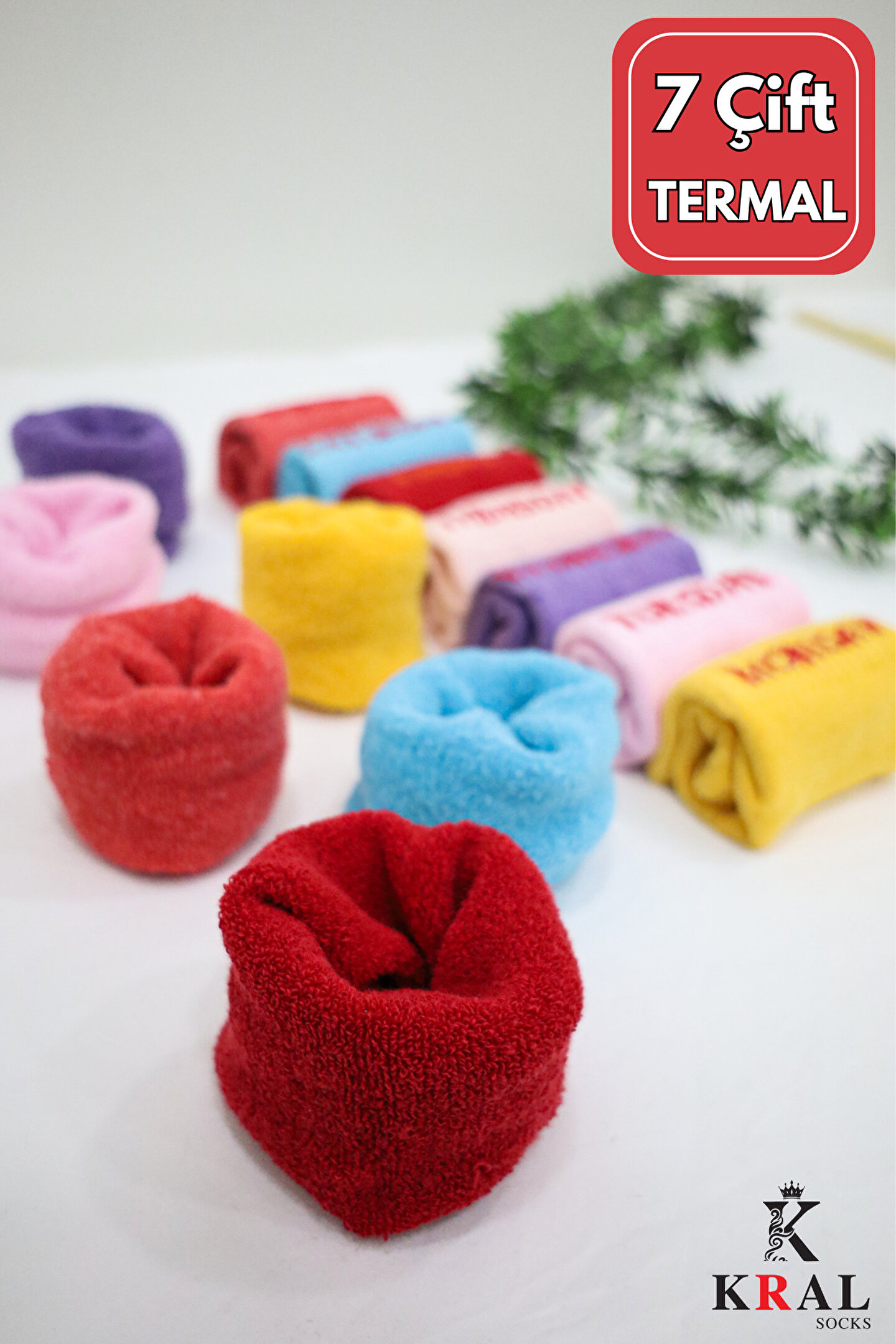 Termal unisex Havlu Patik Çorap 7 'li set Isı Emici Termal Özellikli Havlu ; 36-40 beden aralığına uygundur.; ; Ürün içeriği : %85 COTON, %13 ELASTANE %2 POLYAMİD dır.; Yüksek oranda pamuk içermektedir.; ; Bu ürün tarafınıza (7 Çift) Olarak KRAL Çorap güvencesiyle tarafınıza gönderilecektir.; ; Ürün özellikleri: Bu ürün ayaklarınızın rahatı ve sağlığı için üstün kaliteli pamuk ile dayanıklılığını artırmak içinse yapay lif takviyesi ile üretilmiştir.; ; Hava şartlarında ayağın performansını arttırır ve sağladığı kontrollü ısı sistemi sayesinde rahatlığı muhafaza eder.; ; Yıkama talimatı : 30 derecede ağartıcı kullanmadan yıkayınız.; ; Kuru temizlemeye uygun değildir.; ; - Kış aylarında sıcak tutan termal yapısıyla ayaklarınızı soğuktan korur.; - Pamuklu materyali sayesinde yumuşak dokunuşu ve konforlu kullanımı ile öne çıkar.; - 36-40 beden arası geniş beden skalasıyla herkesin rahatlıkla kullanabileceği bir seçenektir.; - Düz deseniyle sade ve şık bir görünüm sunarken, lastikli tasarımı sayesinde kolayca giyilip çıkartılabilir.; - 30 derecede yıkama imkanı ile pratik bakım avantajı sağlar; böylece çoraplarınız uzun süre ilk günkü gibi kalır.; - Organik pamuk içeriğiyle sürdürülebilir moda anlayışına katkıda bulunurken aynı zamanda cildiniz için de nazik bir tercihtir.; - Unisex koleksiyon parçası olarak hem kadınların hem de erkeklerin kullanımına uygunluk gösterir.; - Günlük kullanım için ideal olan bu çoraplar, casual tarzınıza eşsiz bir dokunuş katacaktır.; - Havlu dokuma tipi ile dayanıklılığı arttırarak sık yıkamalara karşı direnç gösterir.; - Patik çorap tipiyle modern ve fonksiyonel bir alternatif sunar; evde ya da dışarıda rahatlıkla tercih edilebilir.; - Pembe renk seçeneğiyle canlılık katarken, tüm yaş gruplarına hitap eden unisex tasarım anlayışıyla dikkat çeker.;