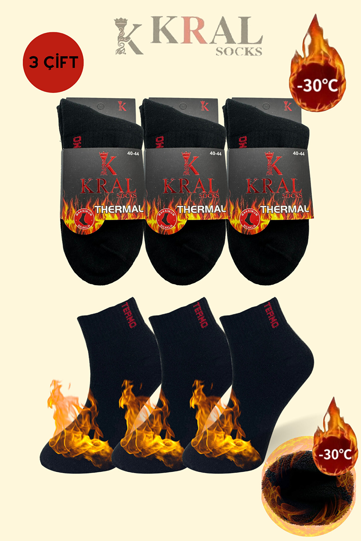 Termal Erkek Kışlık Havlu Patik Çorap Dikişsiz (3 ÇİFT) Siyah Renk
