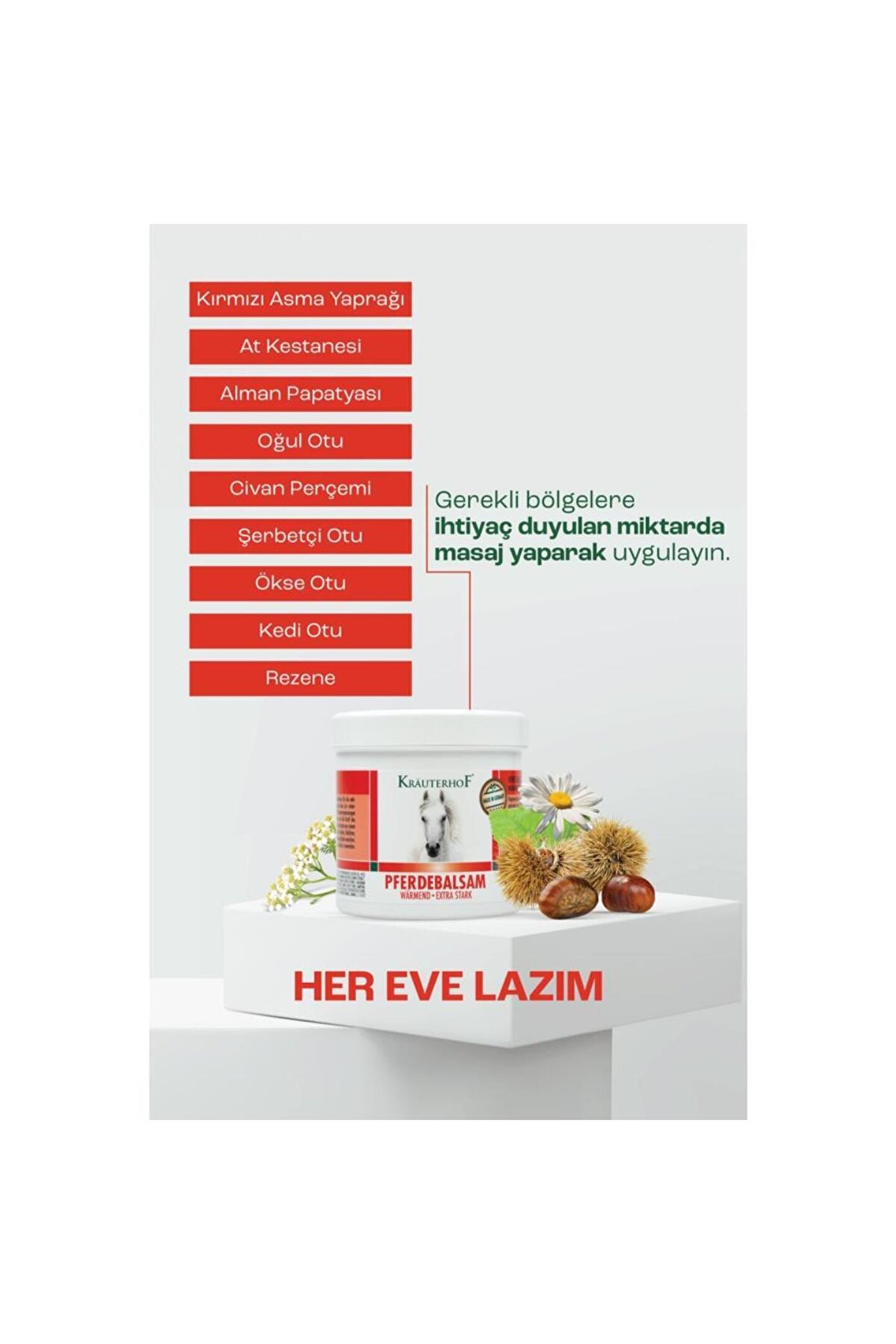 Krauterhof Isıtıcı Masaj Jeli adalelerin ısıtılarak gevşetilmesine, sakinleştirilmesine yardımcı olur. ; Kırmızı asma yaprağı, at kestanesi, alman papatyası, oğul otu, civan perçemi, şerbetçi otu, ökse otu, kedi otu, rezene içerir. ; Öneri: Spor öncesi de kullanılabilen Krauterhof Isıtıcı Masaj Jeli’ ni desteklemek için, Krauterhof Serinletici Masaj Jeli’ ni de spor sonrası kullanarak adalelerin rahatlatılmasına yardımcı olabilirsiniz. ; Kullanım: Gerekli bölgelere ihtiyaç duyulan miktarda masaj yaparak uygulayın. ; Kullanımdan sonra eller yıkanmalıdır. ; Göz, mukoza ve açık yaralar ile temasından kaçınılmalıdır.;