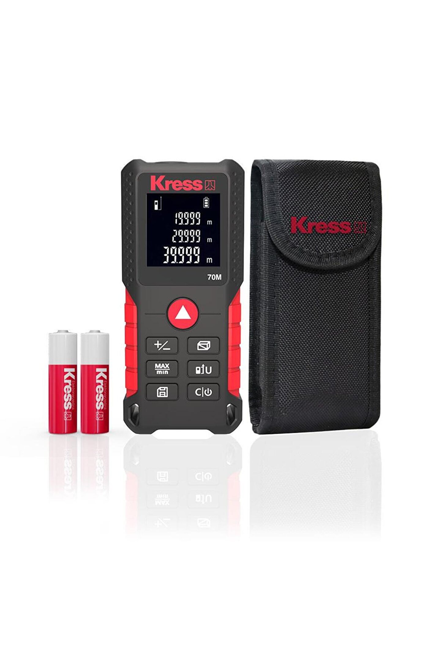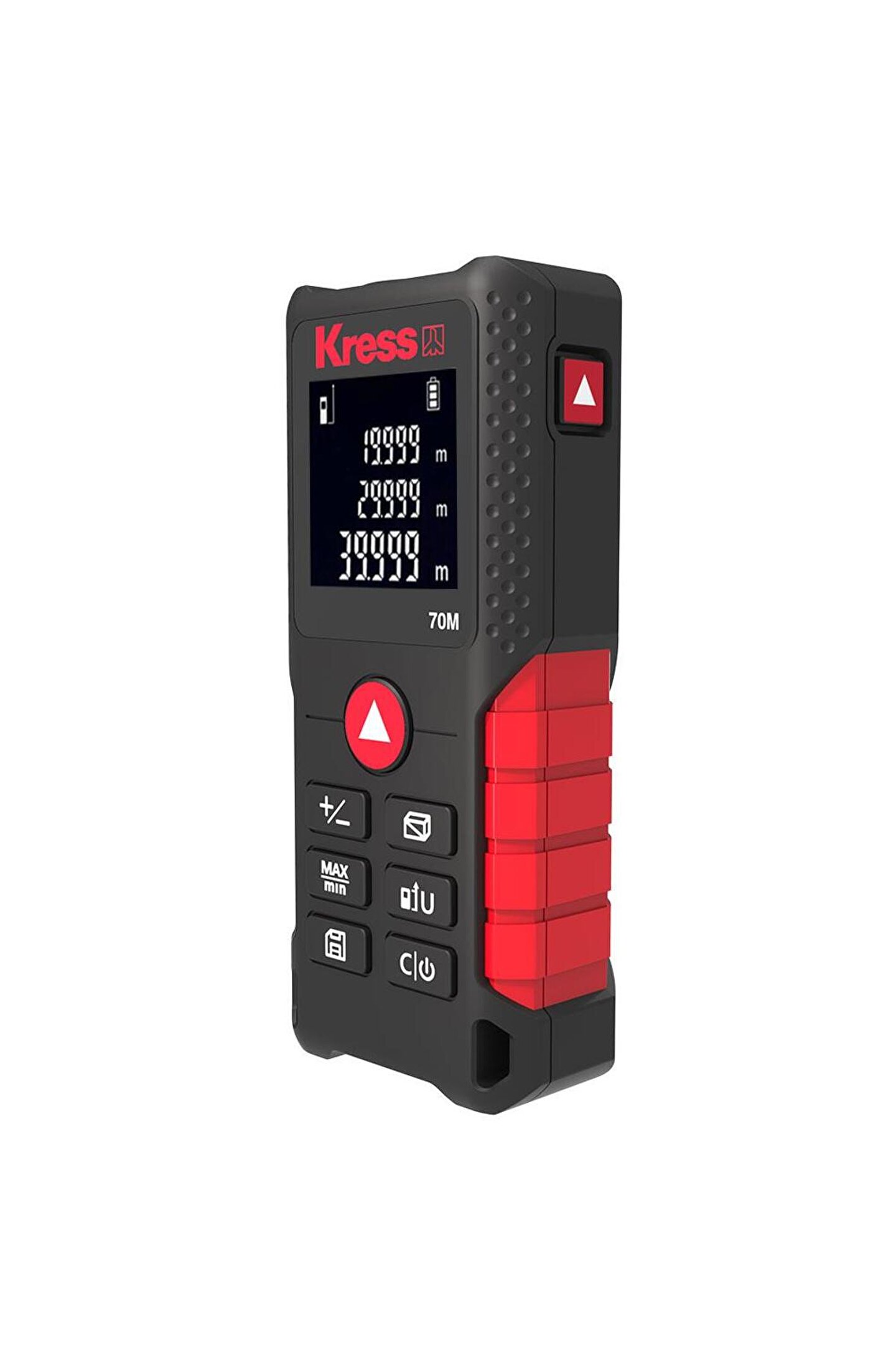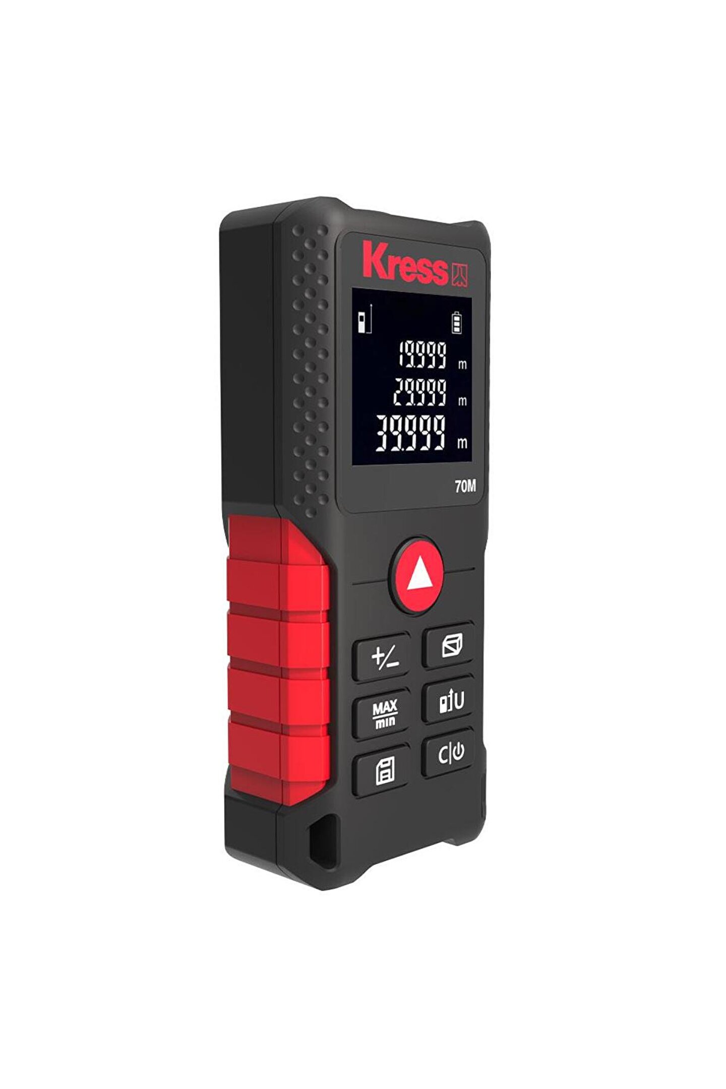 · Kress KI201 70m Profesyonel Çok Fonksiyonlu Lazer Metre · 70 Metre doğru, hatasız ve hassas şekilde mesafe, yükseklik, alan, hacim, açı, pisagor, ikili pisagor, açılı Pisagor, aralıklı ölçüm, gibi üstün ölçüm teknikleri ile mesafe ölçme imkânı.; · Eğim/Açı ölçme özelliği sayesinde zeminin terazisini veya açısını dijital olarak ölçebilme, görebilme imkânı, · Eğim/Açı ölçme özelliği sayesinde tek noktadan (tepe noktası) ölçüm yaparak yükseklik ölçebilme imkânı, · Eğim/Açı ölçer sensörü sayesinde uzaktan karşınızdaki duvarın tepe noktasını ölçerek toplam yüksekliğini ölçme imkânı, · Eğim/Açı ölçer sensörü sayesinde eğimli olan mesafenin uzunluğunu ve kaç derece eğim olduğunu hesaplayabilme imkânı.; · Genişlik, uzunluk, yükseklik, açı ölçme gibi hızlı ve basit şekilde ölçerek alan ve hacim ölçümü yapabilirsiniz.; · Hareket halinde sürekli ölçüm yapabilme özelliği, yürürken ölçüm yapabilirsiniz veya sürekli ölçüm imkânı ile bulunduğunuz noktadan en uzak veya en yakın mesafeyi otomatik olarak ekranda kayıt altına alarak sürekli mesafe ölçümü yapabilirsiniz.; · Pisagor ölçüm fonksiyonu sayesinde uzaktan yükseklik ölçümü yapabilirsiniz, duvar yüksekliğini veya uzaktan herhangi bir yerin yüksekliğini ölçebilirsiniz, Pisagor ölçüm fonksiyonunu kullanarak taban uzunluğunu ve üst kenar uzunluğunu ölçerek duvar yüksekliğini uzaktan rahatça hesaplayabilirsiniz, · İkili Pisagor özelliği sayesinde aynı anda üç noktanın ölçümünü yaparak, üst kenar ölçüsü, taban ölçüsü ve alt kenar ölçüsünü alarak duvarın veya binanın toplam yüksekliğini ölçebilirsiniz, · Ölçüm sonuçlarının en iyi şekilde görülmesini sağlayan aydınlatmalı geniş dijital LCD ekran, karanlık ve yeterli ışık olmayan alanlarda bile rahat kullanım sağlar, · Sesli ikaz sistemi ölçüm yapıldığını bildirir, · Ön, arka veya Tripod bağlantı noktasından itibaren hesaplayarak ölçüm yapma imkânı, · Metre, İnç ve Feet ölçü birimleri olmak üzere 4 farklı ölçü biriminde ölçüm yapabilme ve ölçüleri birbirine çevirebilme özelliği.; · Son ölçülen 20 ölçümü sürekli kayıt altın alarak kaydedebilir ve hafızada tutabilirsiniz, ilave not vs.; tutmaya gerek kalmadan direk hafızaya kaydedebilirsiniz.; · Tripod bağlantı noktası sayesinde, Tripod bağlayabilir uzun mesafelerde hassas ve doğru ölçüm yapabilirsiniz.; · Kimseye ihtiyaç duymadan tek başınıza 70 metreye kadar hassas ve doğru ölçüm yapabilirsiniz · Şerit metre, kırma metre vs.; metrelere göre tek başınıza kolay, hızlı ve hassas ölçüm yapabilirsiniz, · 2 Adet 1,5V AAA kalem pil ile 5.000 defaya kadar ölçüm yapmanızı sağlar, pil değiştirmeye gerek kalmadan çok uzun süre kullanım imkânı, · Toplama, çıkarma yapabilme, mesafe, yükseklik, alan, hacim ve hareket halinde sürekli ölçüm özellikleri ile tüm işlemlerinizi rahatça yapabilirsiniz, · Taşıma kılıfı ile kolay muhafaza ve taşıma imkânı.; · Profesyonel Kullanıma Uygundur.; · Güç: 2 x 1,5V AAA · Çalışma Mesafesi: 0.05m-70m · Ölçüm hassasiyeti: ±1,5mm · Açı Sensör Hassasiyeti: ±0.4˚ · Ölçüm Birimleri: M/ft/in/ft + in · Tripod Bağlantısı: Var · Lazer Sınıfı: 2 · Ölçüler: 120 x 48 x 27 mm · Ağırlık: 120gr.; · Standart Ekipman: Kemer Askılı Taşıma Kılıfı · Kress, 1928 yılında Almanya’nın Tübingen şehrinde Alman Mühendis Christian Kress tarafından kuruldu.; Elektrikli El Aletleri Sektöründe 90 yılı aşkın tecrübesi ile Kress, profesyonel pazar liderinden beklenen yüksek kalite ve verimlilikte Elektrikli El Aletleri geliştirmekte ve pazara sunmaktadır.; · Kress: Gerçek Alman, Gerçek Profesyonel.
