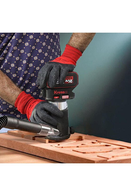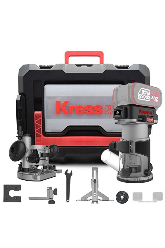 • Kress KUD26.91 20Volt Kömürsüz 6/8mm Devir Ayarlı Şarjlı Profesyonel Avuç İçi El Frezesi Formika Tıraşlama (Akü Dahil Değildir)