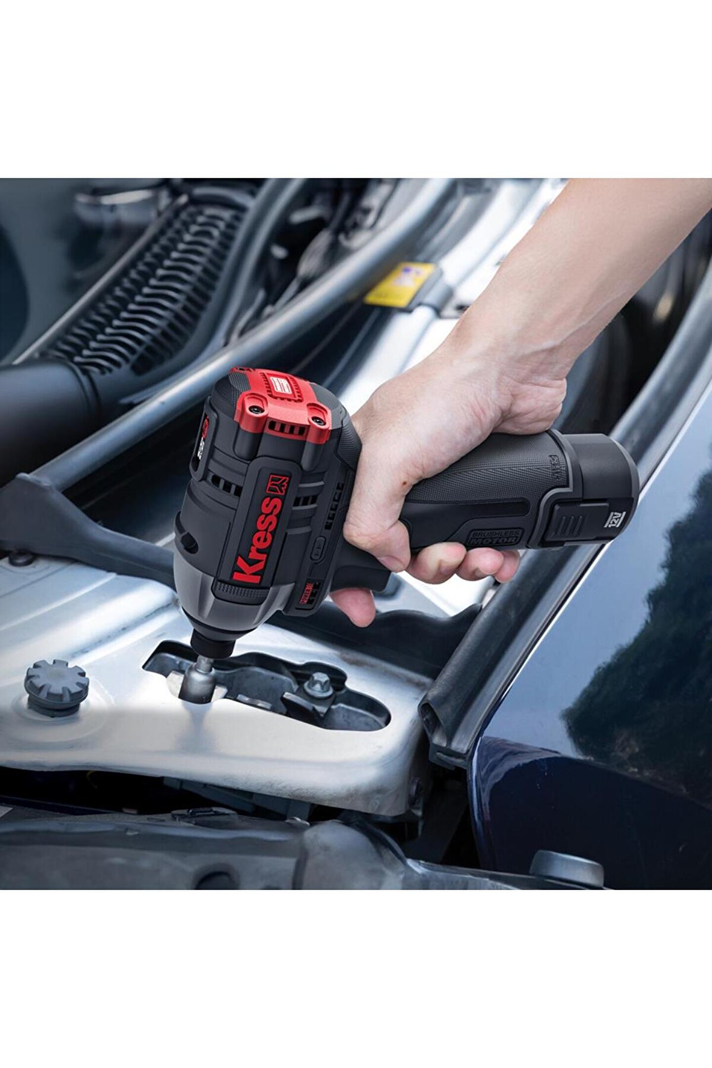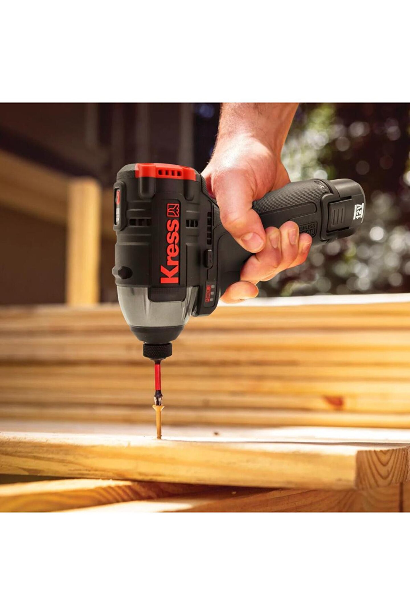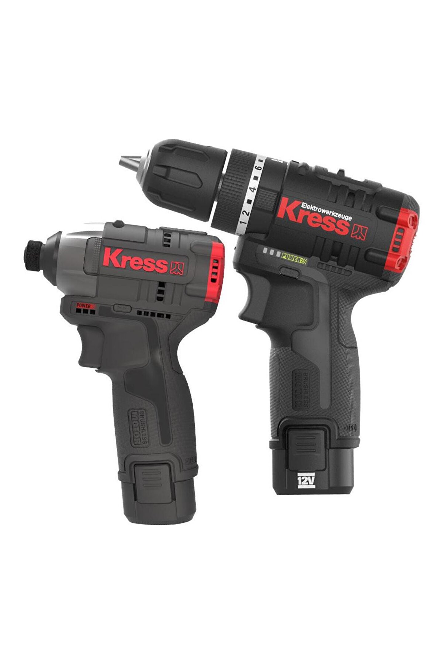 · Kress KUG02 12Volt/2.0Ah.; Li-ion Çift Akülü Kömürsüz Profesyonel Şarjlı Darbeli Matkap + Kömürsüz Darbeli Tornavida Kombo Set · Kress KUC12 12Volt/2.0Ah.; Li-ion 40Nm.; Kömürsüz Profesyonel Şarjlı Darbeli Matkap + Kress KUB50.2 12Volt/2.0Ah.; Li-ion 140Nm.; Kömürsüz Profesyonel Şarjlı Darbeli Tornavida · Kress 12Volt Li-ion akü ve kömürsüz motor teknolojisi ile rakiplerinden daha güçlü, daha seri daha kompakt ve daha yüksek sağlar.; · KUC12 ve KUB50.2’den oluşan Kombo set sayesinde hem şarjlı darbeli matkap hem de şarjlı darbeli tornavida ile Profesyonel olarak çok yönlü kullanım imkânı.; · Delme, Vidalama, somun başlı vidaların sıkılıp sökülmesi, akıllı vidaların seri bir şekilde metal yüzeylere sıkılması gibi tüm profesyonel işlerde kullanmak üzere tasarlanmış kömürsüz motor teknolojisi sayesinde son derece güçlü ve sağlam şanzıman yapısı ile en zorlu uygulamalarda dahi üstün sağlar.; · PMP™ Akıllı güç kontrol sistemi sayesinde aşırı yük, aşırı ısınma ve derin deşarja karşı üstün koruma sağlar.; · 20+1+1kademeli tork ayarı ile duvar, ahşap, metal, plastik delme ve her türlü vidalama uygulamasında üstün kontrol ve hassaslık sağlar.; · Vidalama için ve darbeli delme fonksiyonları için birbirinden bağımsız iki ayrı tork ayar bileziği sayesinde uzun şanzıman ömrü.; · KUB50.2 · 140Nm maksimum tork gücü sayesinde üstün güç ve ile en zorlu uygulamalarda dahi zorlanmadan delme ve vidalama yapma imkânı · Kress Aktif Akü Koruma Teknolojisi ile aşırı zorlanmalarda ve uç sıkışması gibi durumlarda otomatik olarak akü enerjiyi durdurur ve LED ikaz ışığı yanıp söner, aküyü ve motoru korumaya alır.; · PMP™ Akıllı güç kontrol sistemi sayesinde aşırı yük, aşırı ısınma ve derin deşarja karşı üstün koruma sağlar.; · En hassas vidalama uygulamaları için tekitten devir ayarlı şalter ile hassas tork ve devir ayarlama imkânı sağlar.; · 3 kademeli elektronik tork ve devir ayarı tetik hassasiyetini devre dışı bırakarak yüke bindiğinde dahi sabit tork ve devir sayısı sağlar.; · ¼”6,35mm ‘Tak-Unut’ anahtarsız altıgen uç tutucu tek elle hızlı aksesuar değiştirme imkânı sağlar.; · Profesyonel Kullanıma Uygundur.; · Güç: 12Volt Li-ion · Akü Kapasitesi: 2.0Ah.; 21.6Wh.; · KUC12- Maks.; Tork: 40Nm · KUC12- Yüksüz Hızı: 0-500/0-1800 dev/dk.; · KUC12- Maksimum Delme Kapasitesi: Beton:8mm, Metal: 10mm, Ahşap: 20mm · KUC12- Mandren Kapasitesi: 10mm · KUC12- Ağırlık: 0,95 Kg.; · KUB50.2- Yüksüz Hızı: 0-1200 / 0-2500 / 0-3300 dev/dk.; · KUB50.2- Darbe Sayısı: 0-1600 / 0-3500 / 0-4000 darbe/dk.; · KUB50.2- Max.; Tork: 140Nm.; · KUB50.2- Mandren Kapasitesi: 6,35mm (¼”) · KUB50.2- Ağırlık: 0.88 Kg.; · Standart Ekipman: 2 Adet 12V 2.0Ah.; Li-ion Akü, 1.20 Saatlik Hızlı Akü Şarj Cihazı, 1 Adet PH2 Vidalama Ucu, Taşıma Çantası · Kress, 1928 yılında Almanya’nın Tübingen şehrinde Alman Mühendis Christian Kress tarafından kuruldu.; Elektrikli El Aletleri Sektöründe 90 yılı aşkın tecrübesi ile Kress, profesyonel pazar liderinden beklenen yüksek kalite ve verimlilikte Elektrikli El Aletleri geliştirmekte ve pazara sunmaktadır.; · Kress: Gerçek Alman, Gerçek Profesyonel.
