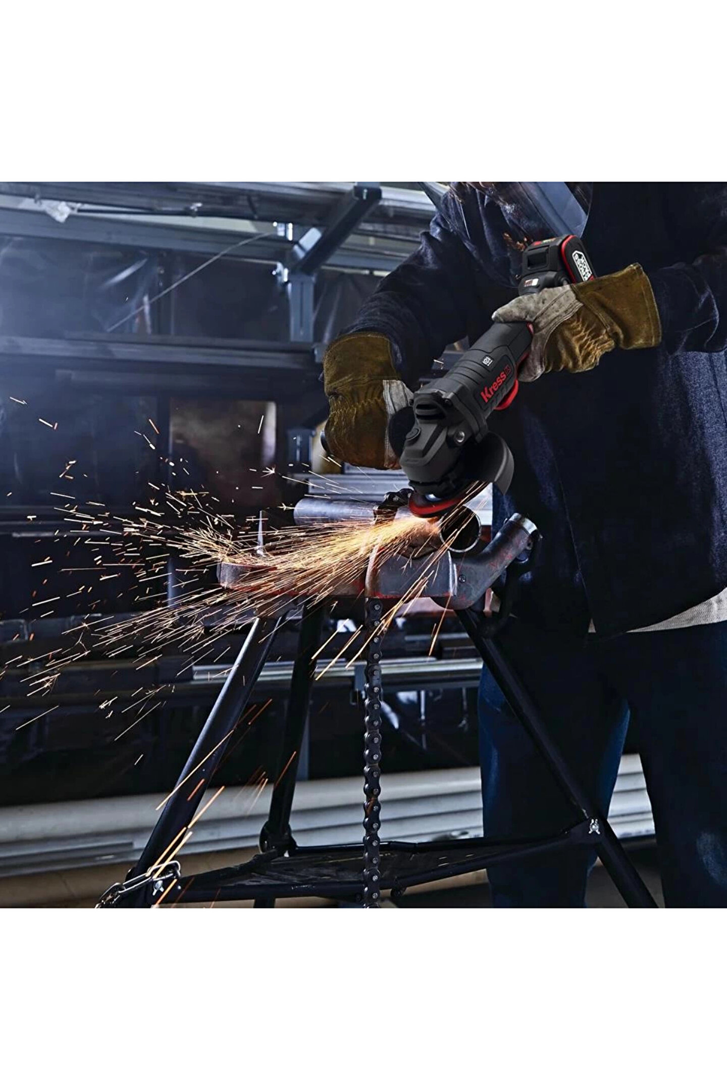 • Kress KUH04.1 20Volt 5.0Ah. Li-ion Çift Akülü 125mm Kömürsüz Profesyonel Devir Ayarlı Alttan Tetikli Avuç Taşlama